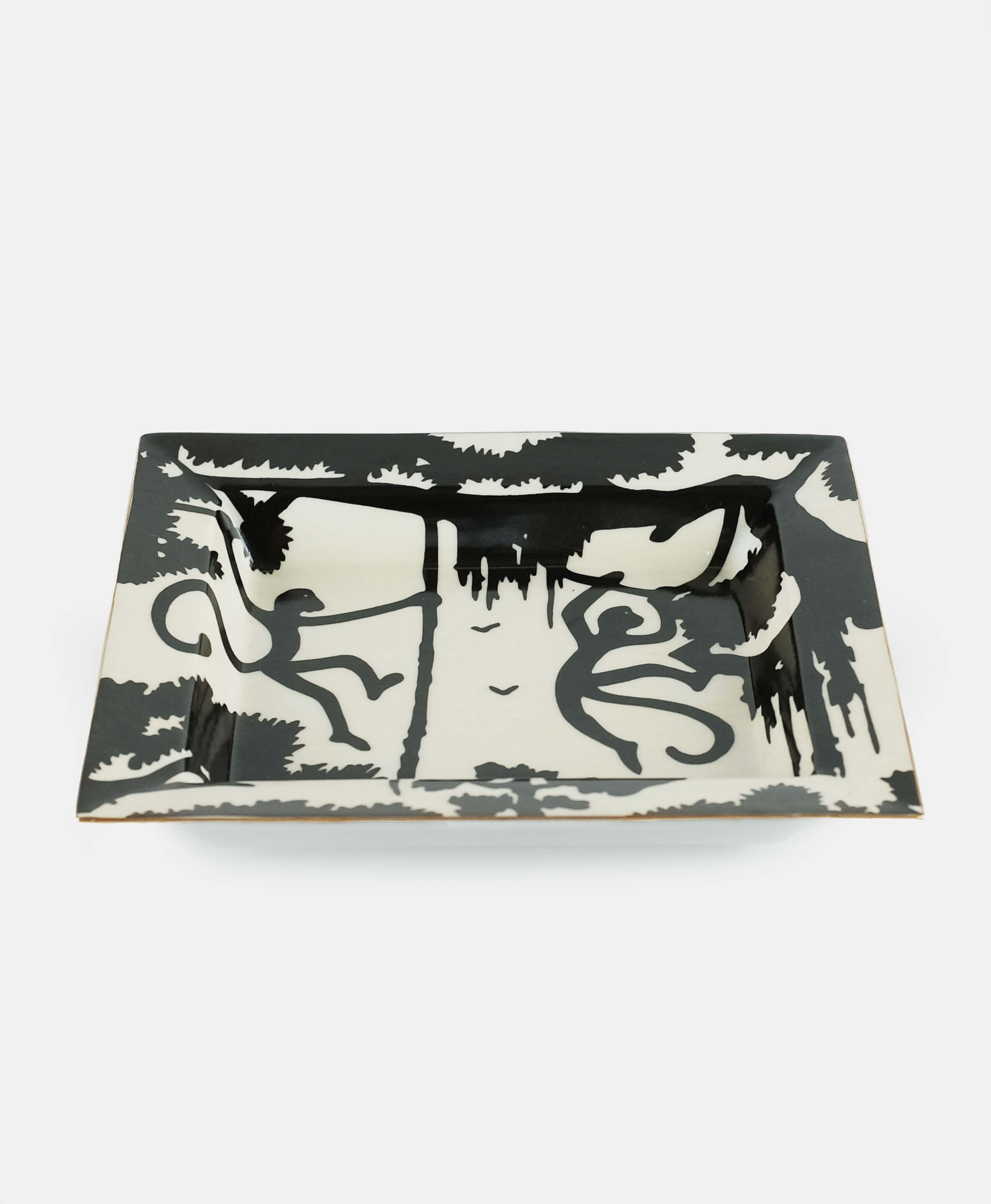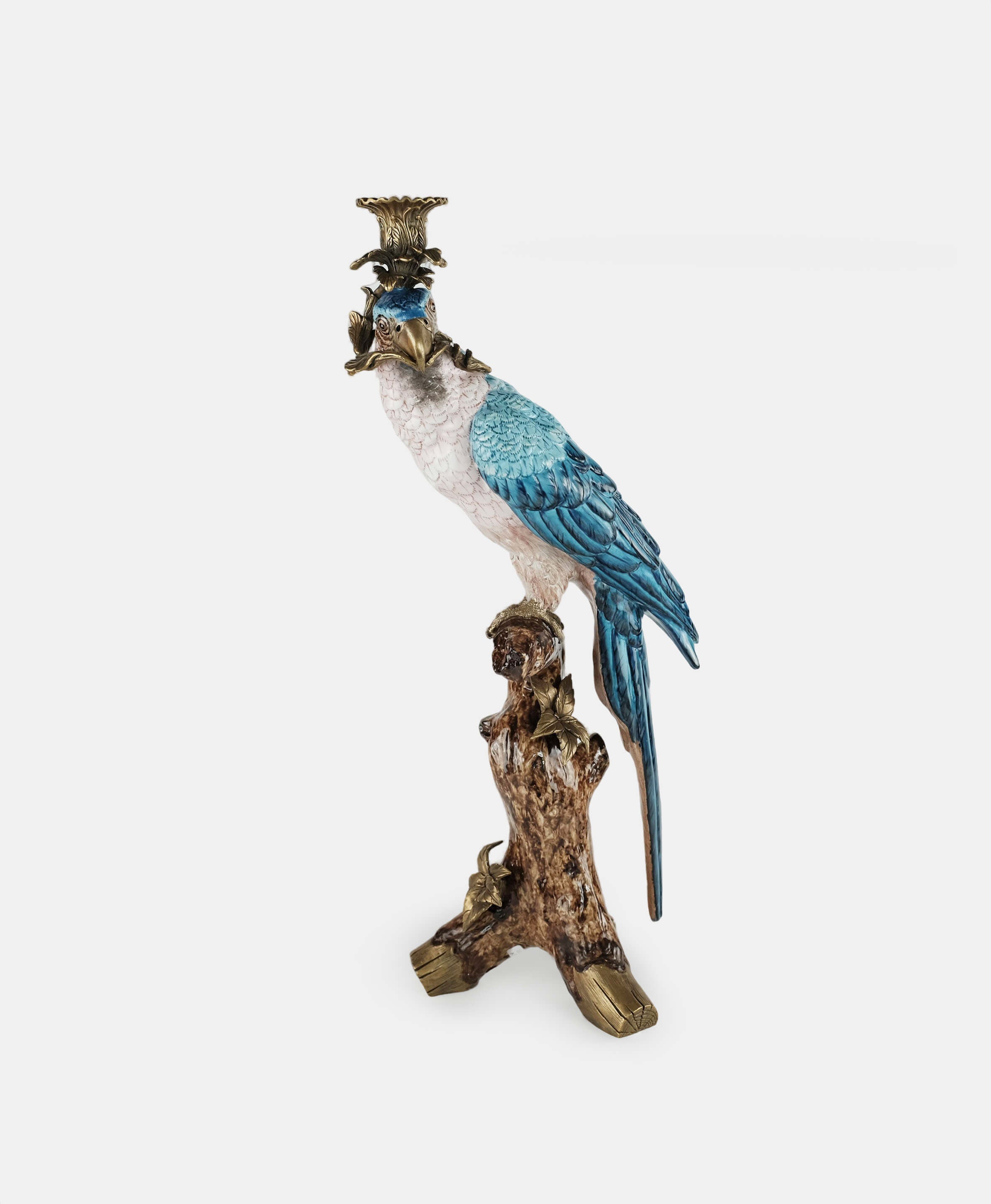 Parrots Motif Oval Cachepot with Bronze Handles in Porcelain