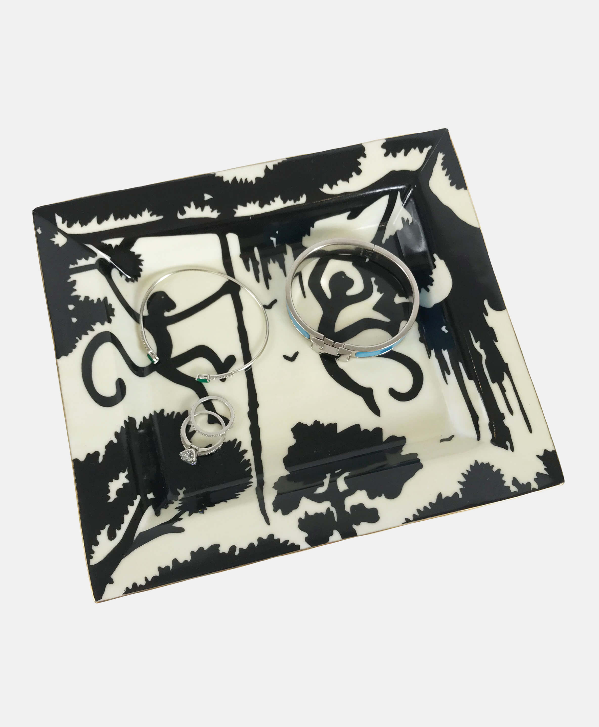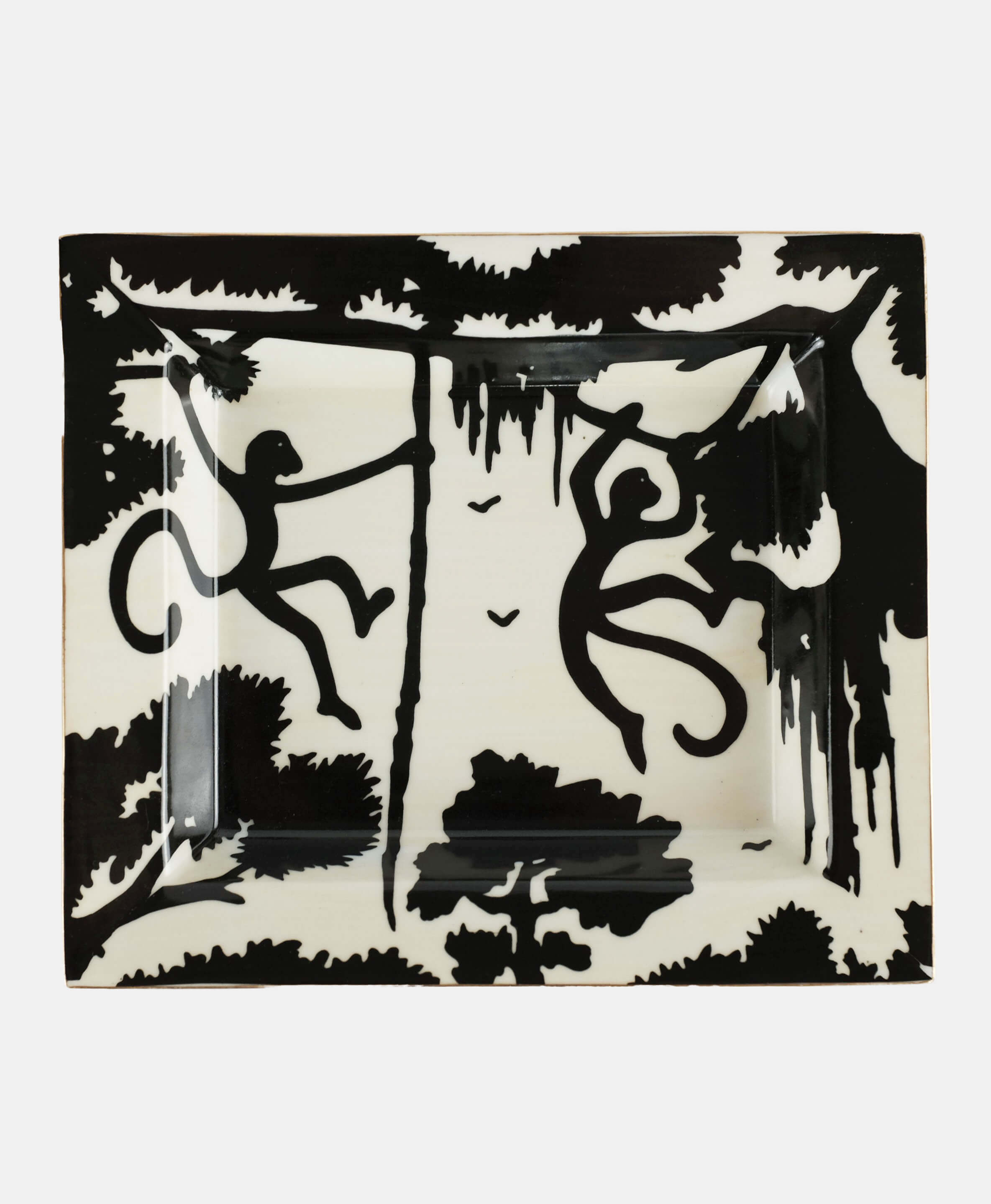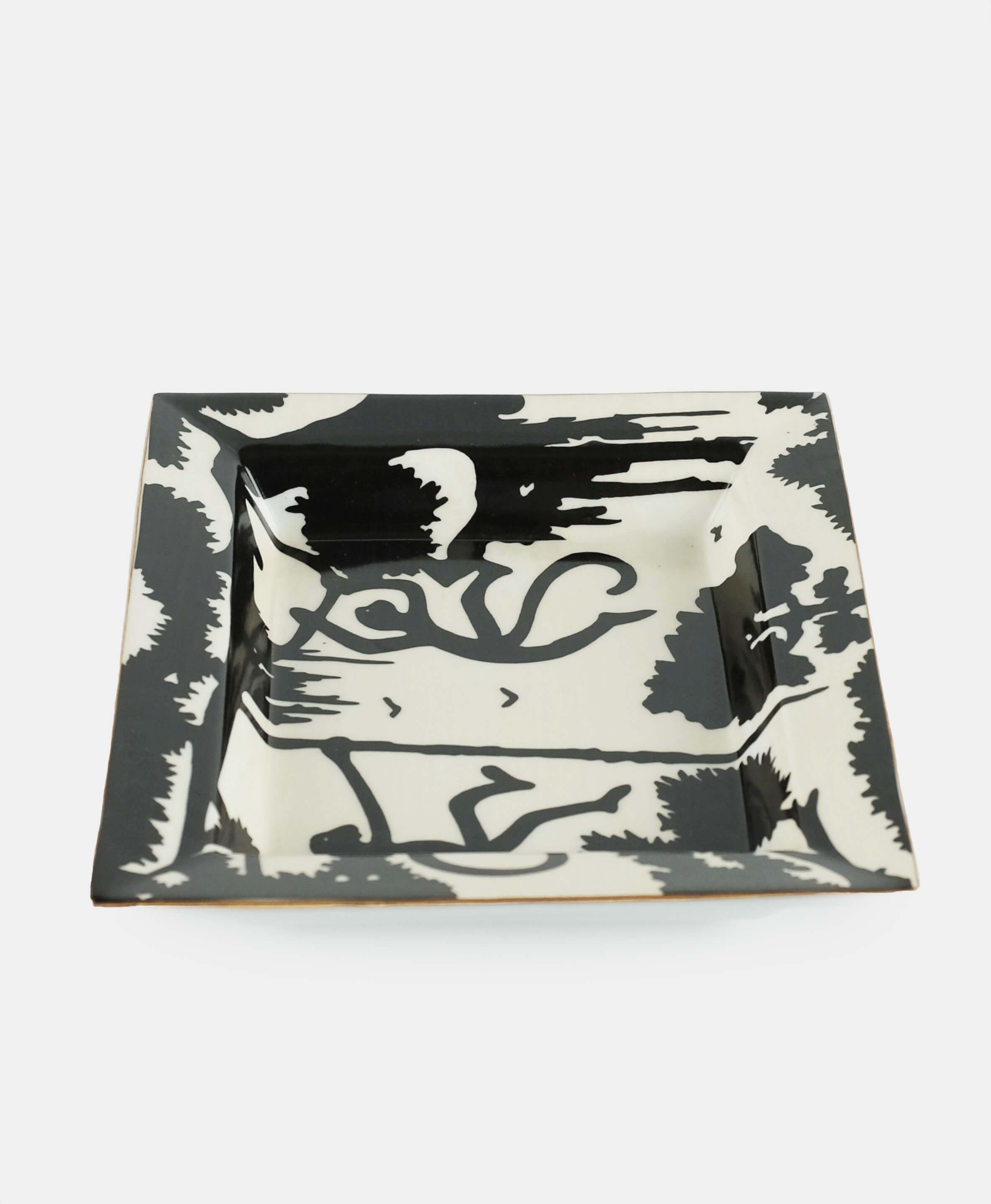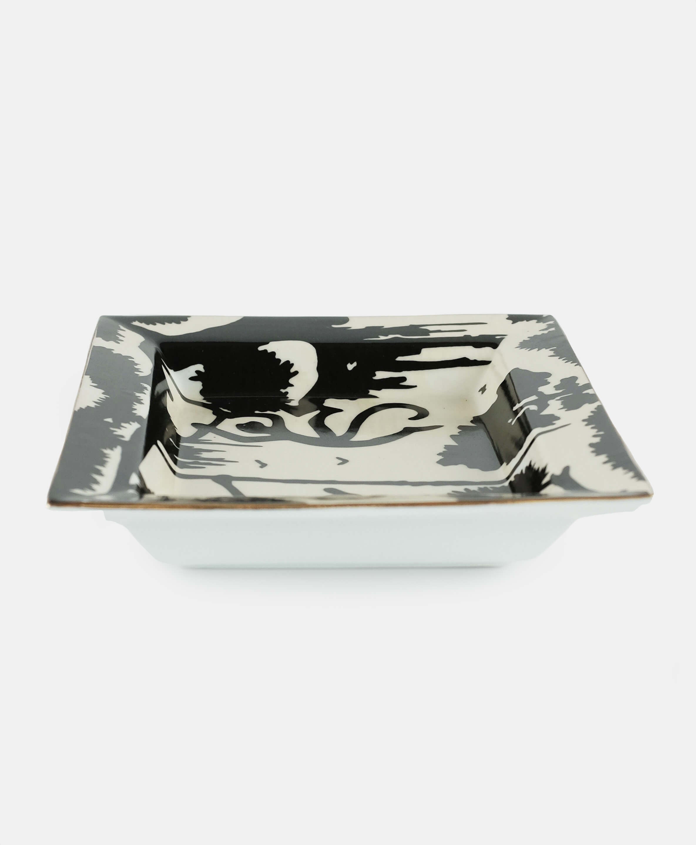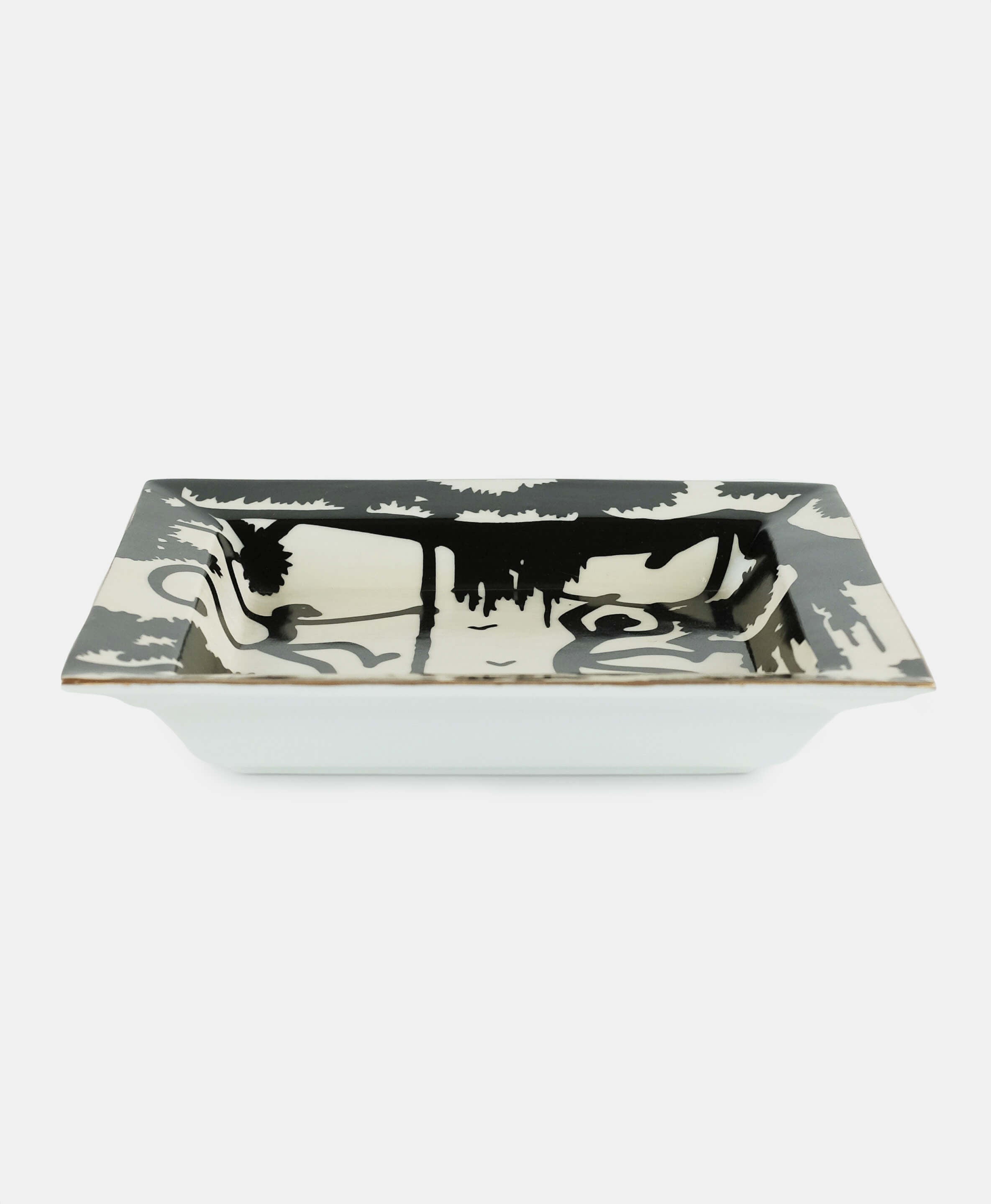 This chic porcelain tray is designed by French designer Nicolas Blandin as part of his “Jungle” collection. Blandin, who created collections for historically renowned ceramic houses such as Les Emaux de Longwy (a prestigious French factory which has produced enamelware since 1798) and Henriot Quimper Faience, has pieces in many luxurious five-star hotels around the World and appeared in many art, décor and architectural magazines. The neutral black and white colors make it a perfect piece for a coffee table or to organize items on a desk.