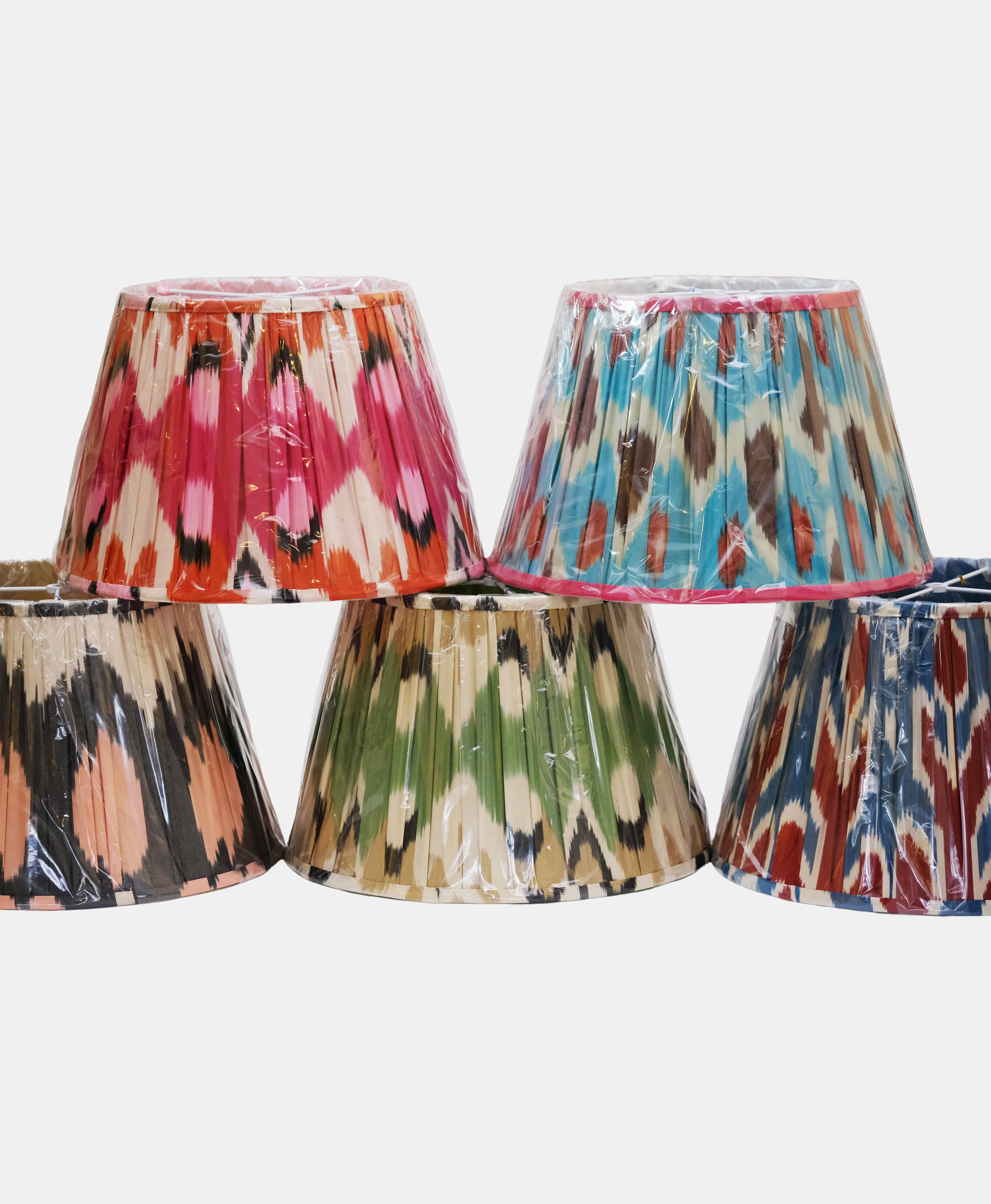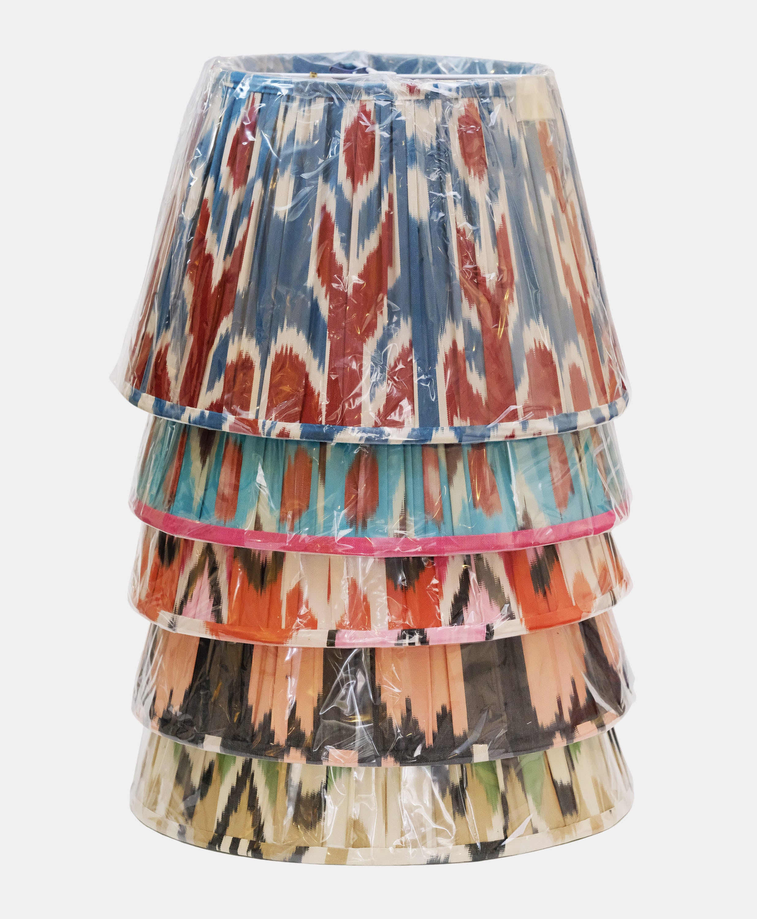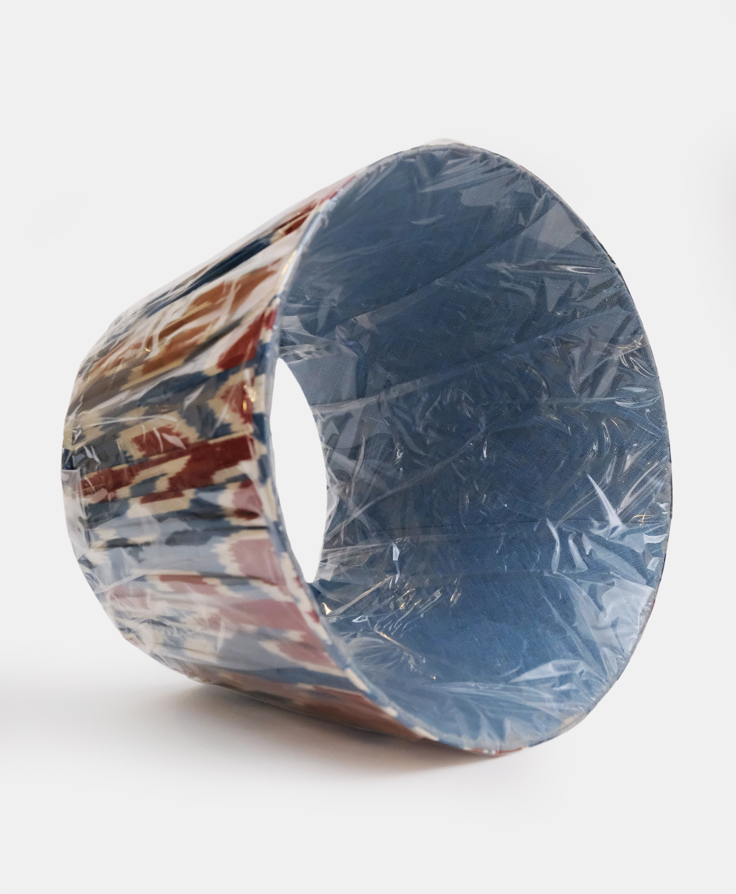 - The outer fabric of this lampshade is made out of gathered IKAT and is a mix of silk and cotton.