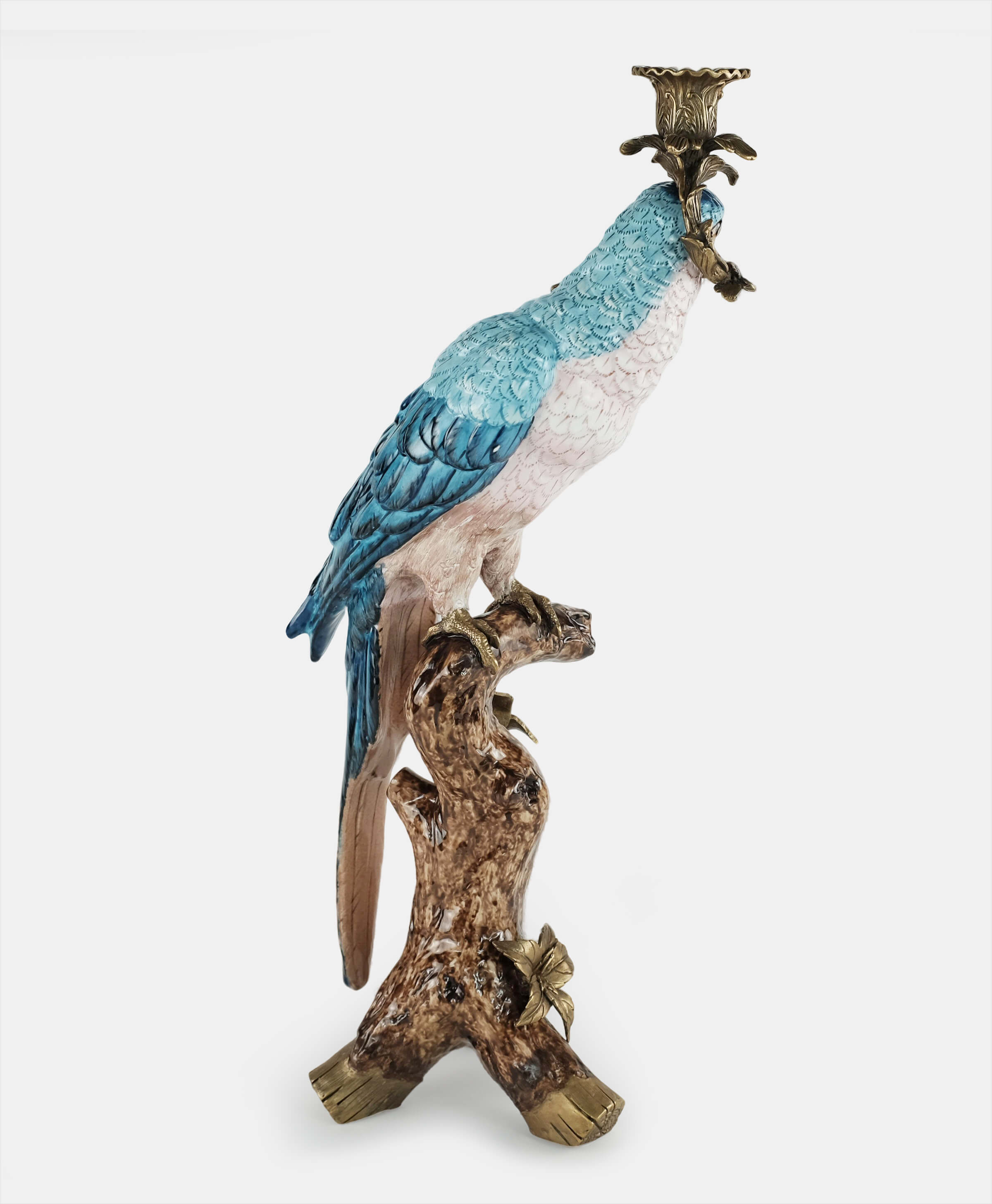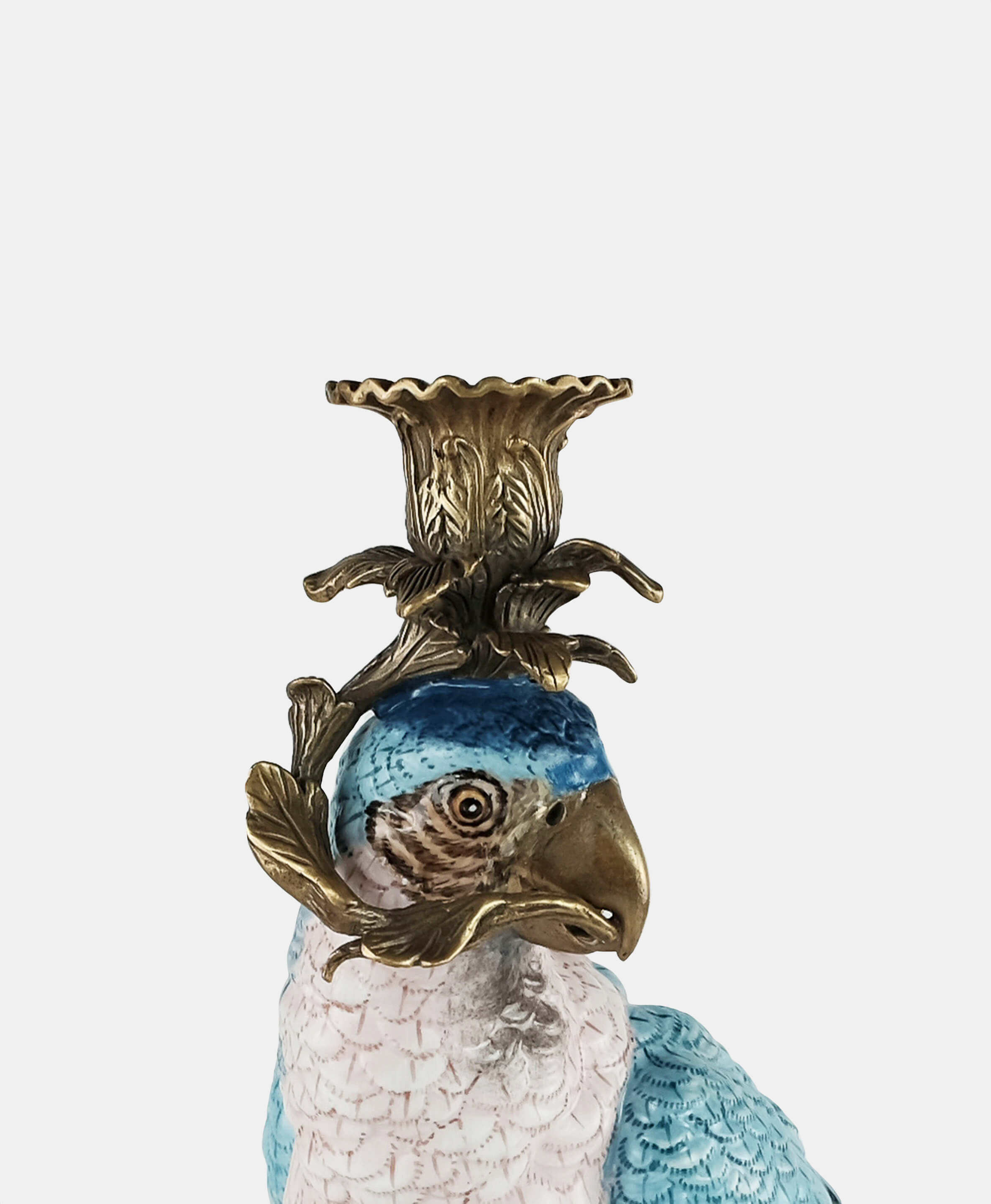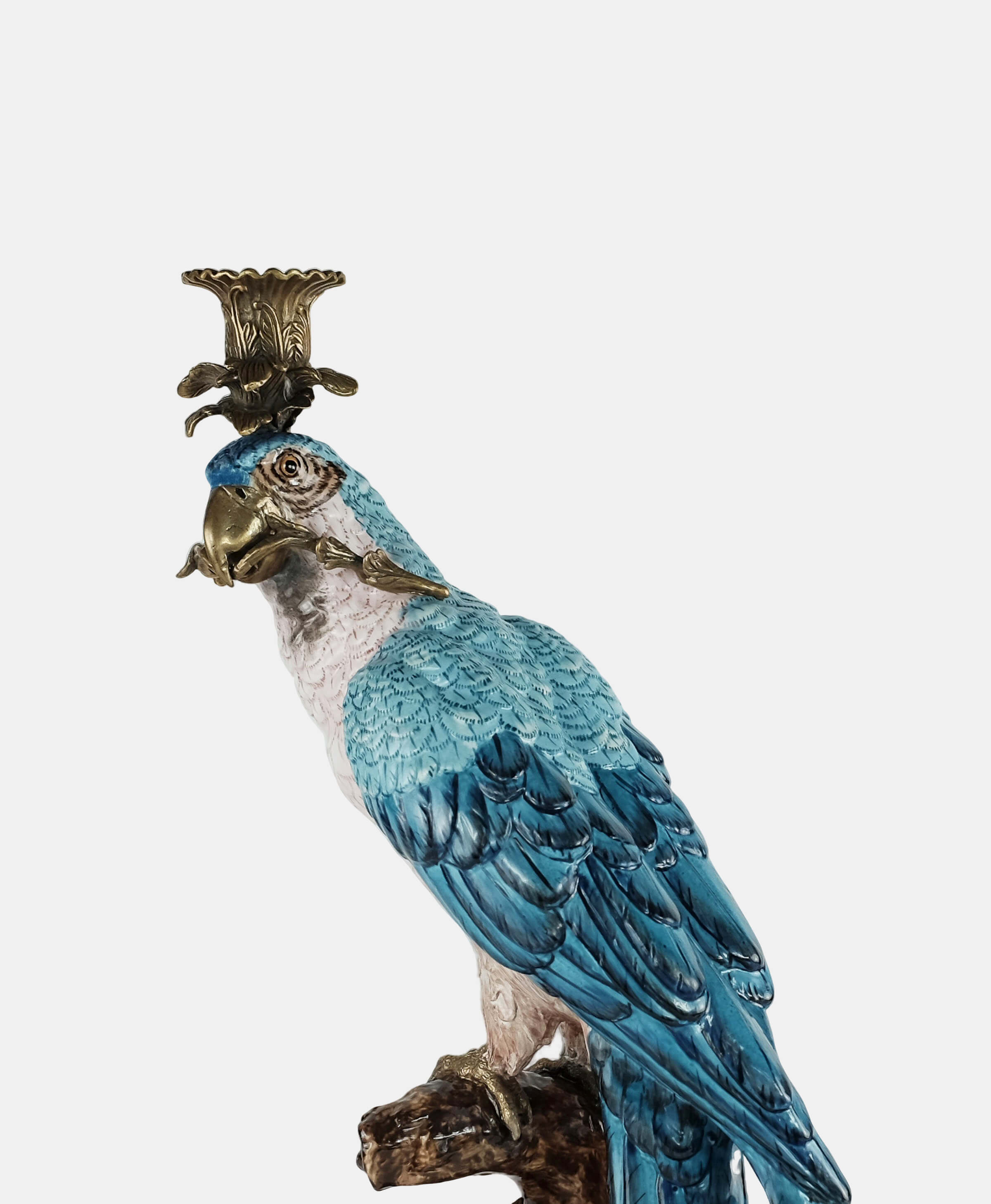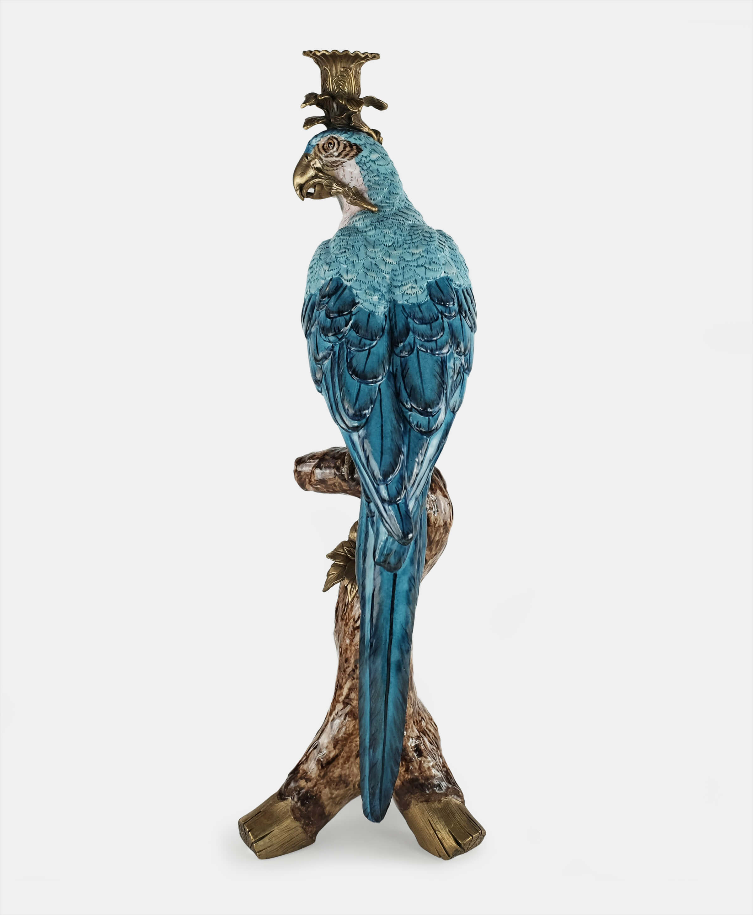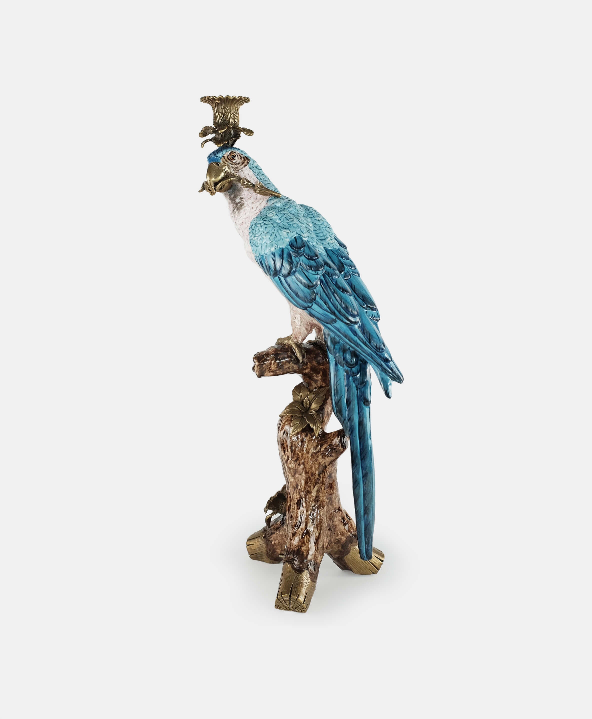 Inspired by the beautiful tropical birds that are symbols of positive energy and happy thoughts, this hand-painted parrot in a bronze pedestal is a beautiful way to add color and celebration to any home. As a candleholder or just as decoration this piece works beautifully as a pair or standing alone in an entry hall, coffee or side table.