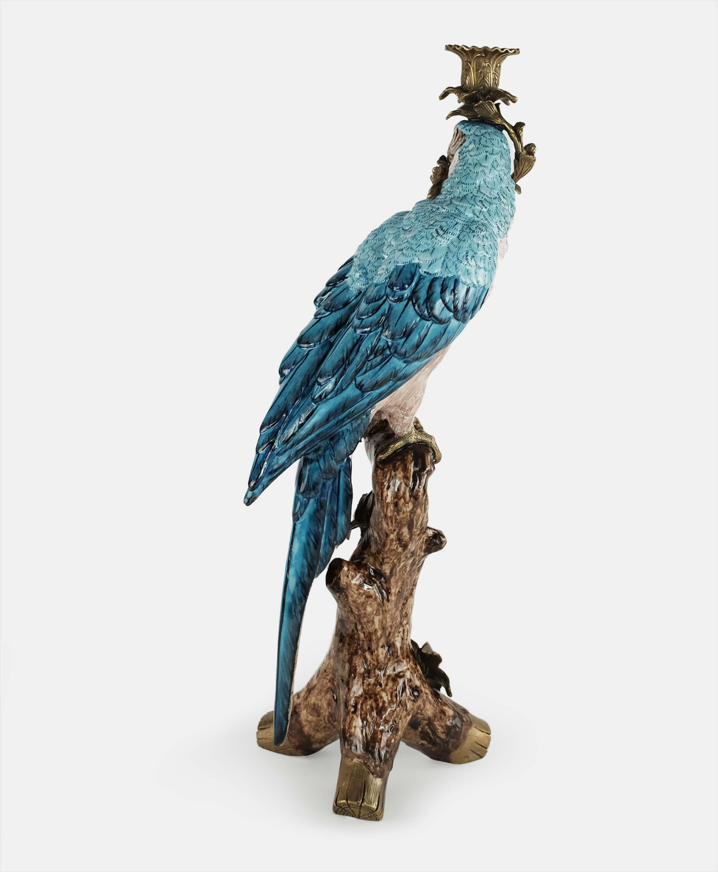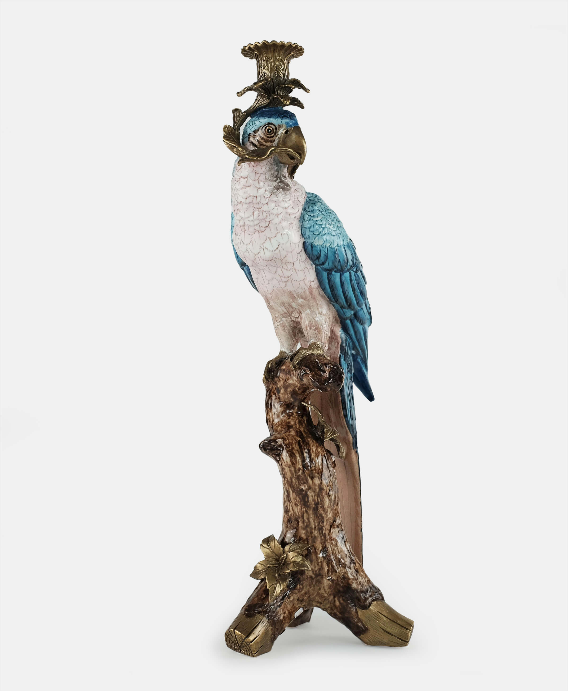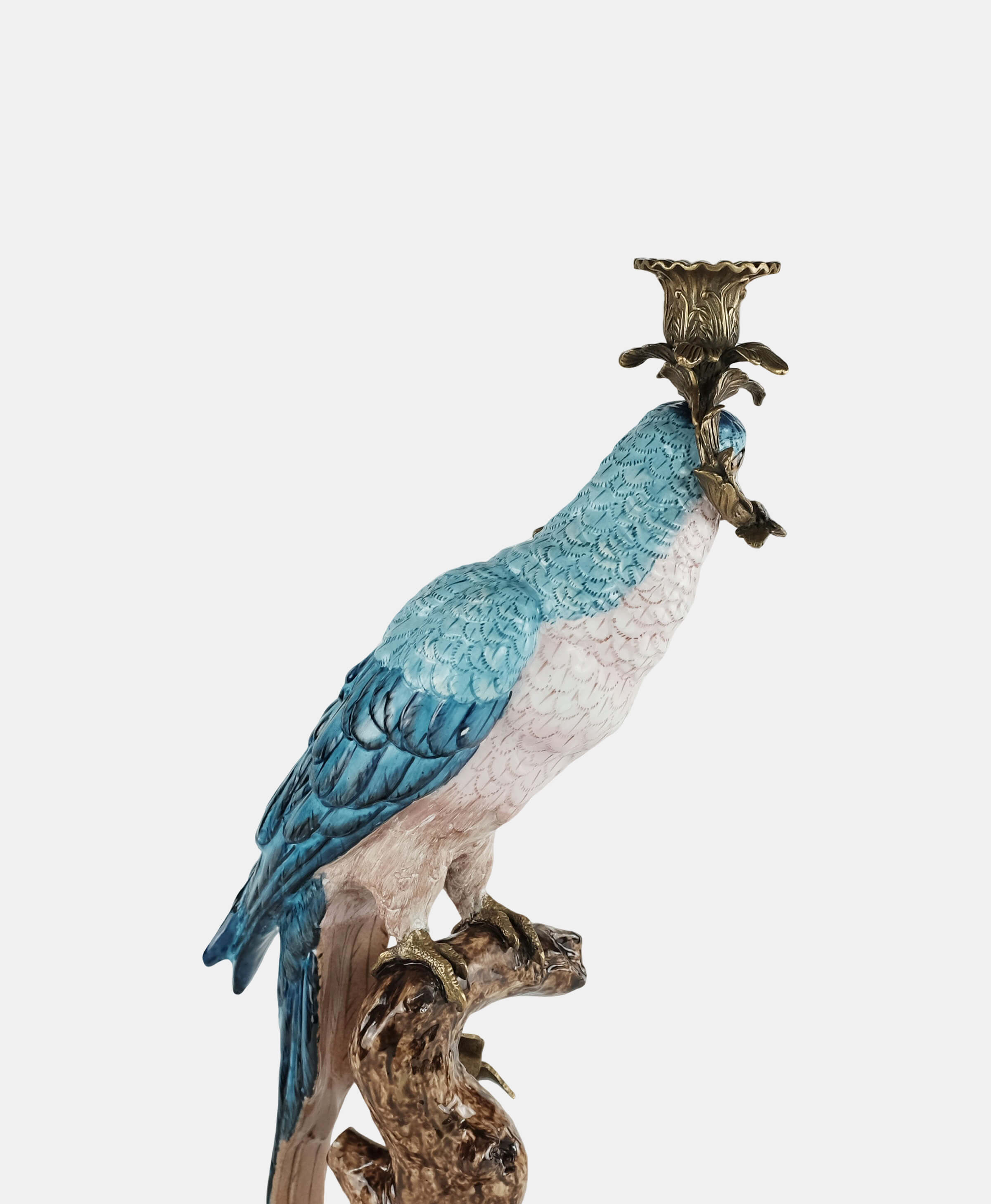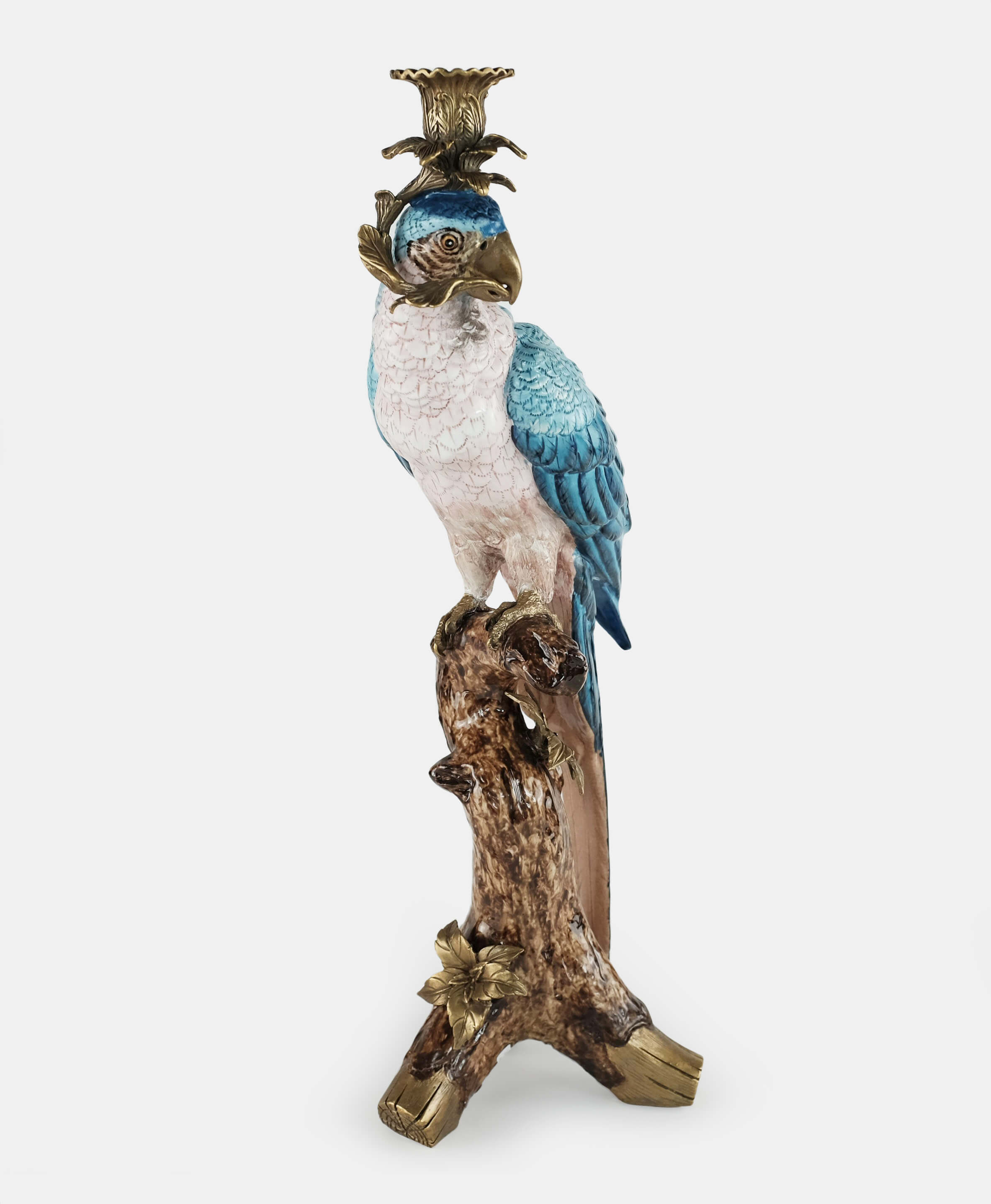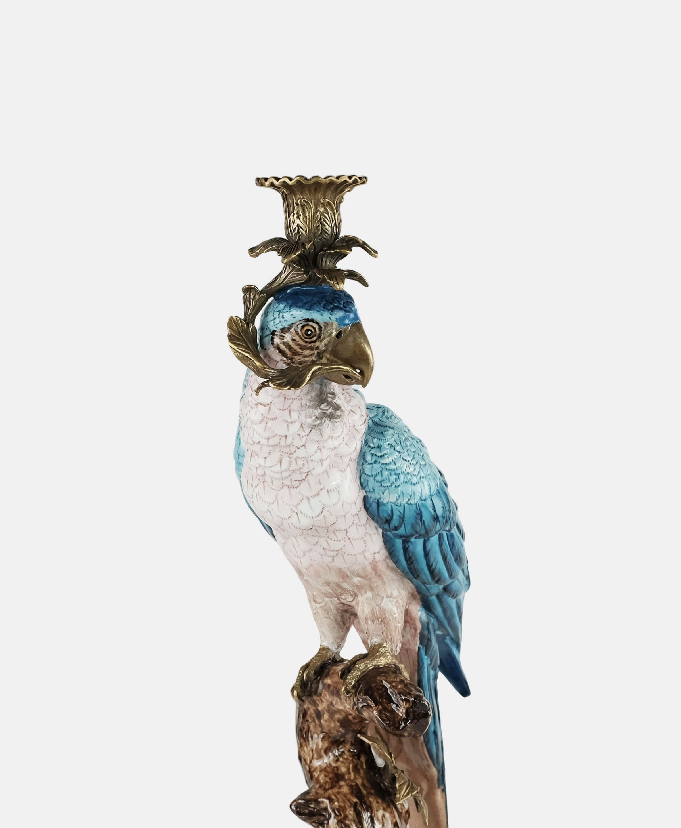 Inspired by the beautiful tropical birds that are symbols of positive energy and happy thoughts, this hand-painted parrot in a bronze pedestal is a beautiful way to add color and celebration to any home. As a candleholder or just as decoration this piece works beautifully as a pair or standing alone in an entry hall, coffee or side table.