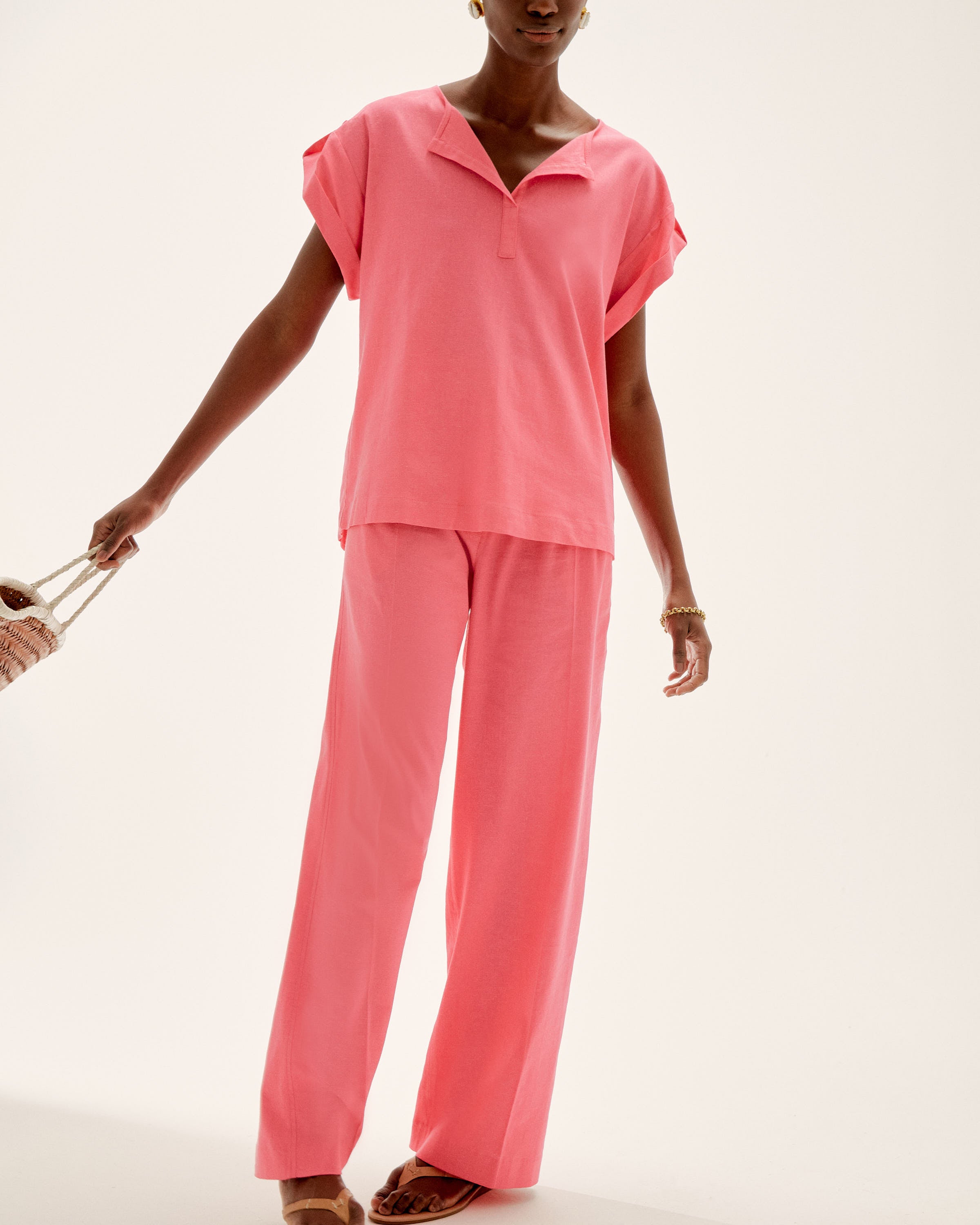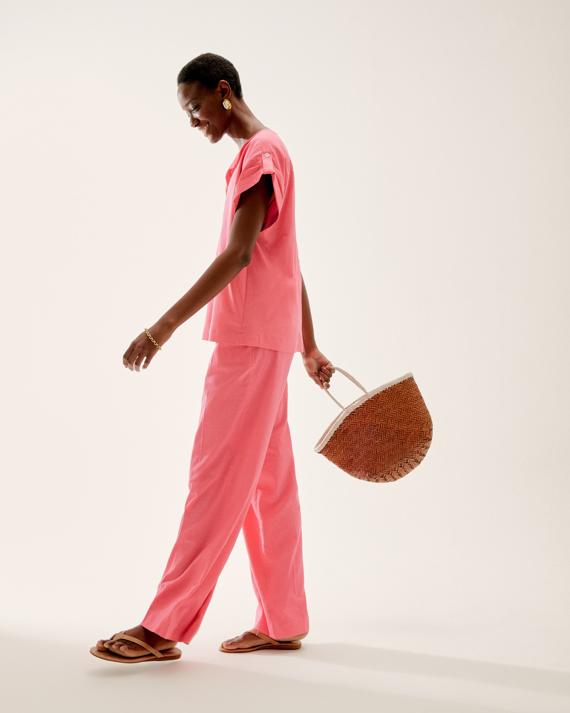 Versatile and minimalist, the Horto Linen Top is an elevated basic that will take you through seasons and years to come. The relaxed silhouette is flattering to everybody and the rolled up sleeves are gently held by a delicate shell button. Pair it with the collection’s Ipanema Linen Pant for a chic Summer look or with a mini skirt for a modern take on a romantic outfit.