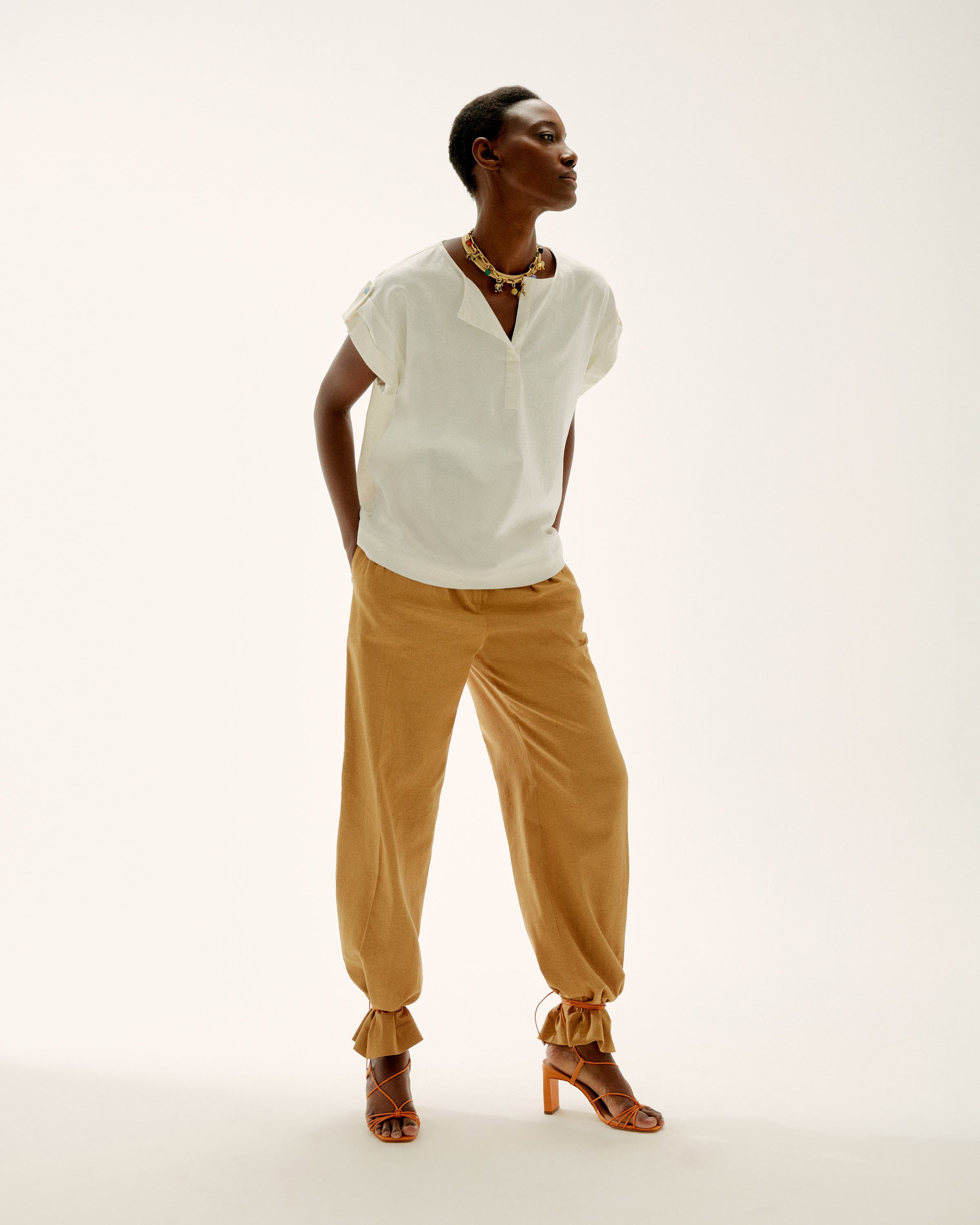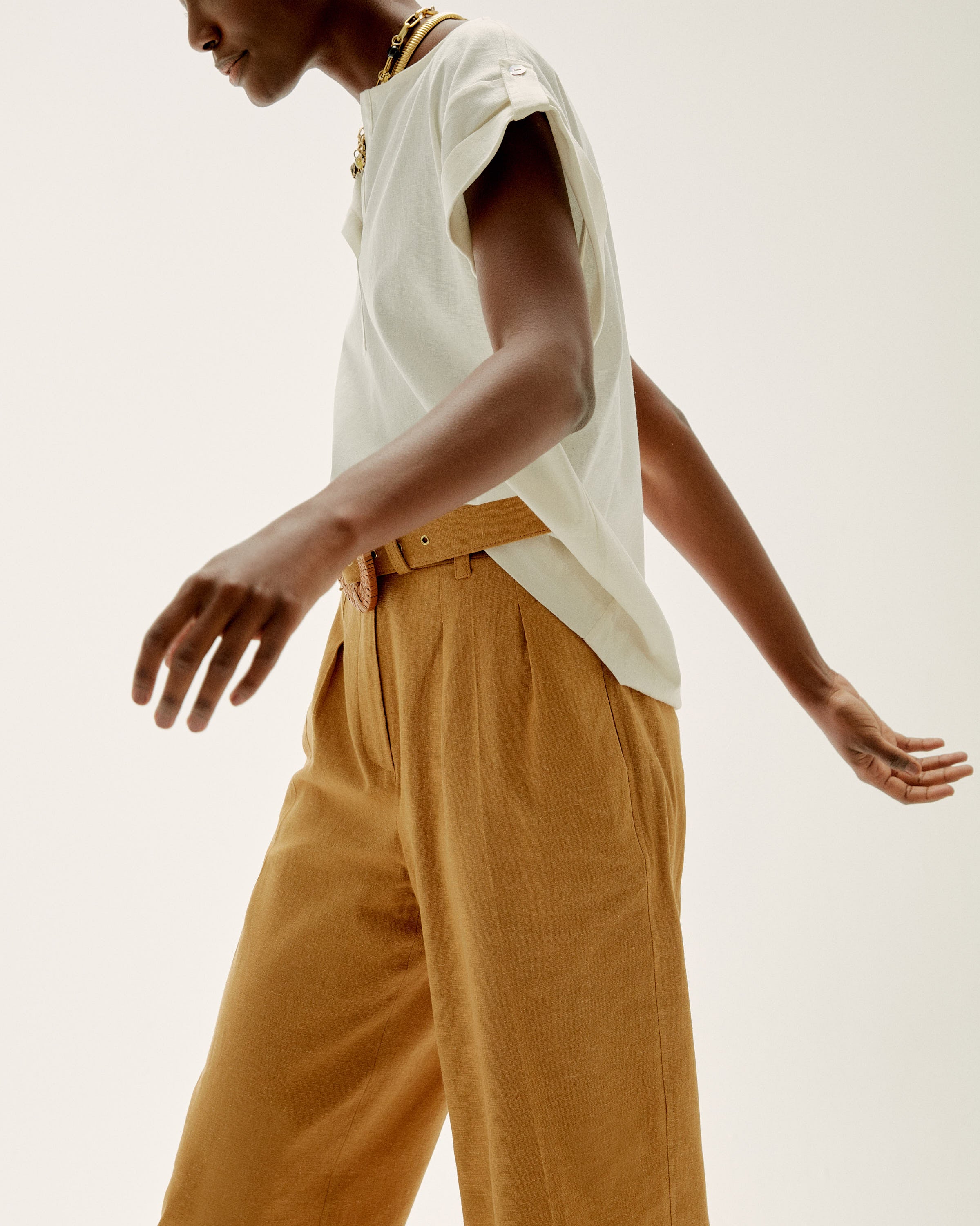 Versatile and minimalist, the Horto Linen Top is an elevated basic that will take you through seasons and years to come. The relaxed silhouette is flattering to everybody and the rolled up sleeves are gently held by a delicate shell button. Pair it with the collection’s Ipanema Linen Pant for a chic Summer look or with a mini skirt for a modern take on a romantic outfit.