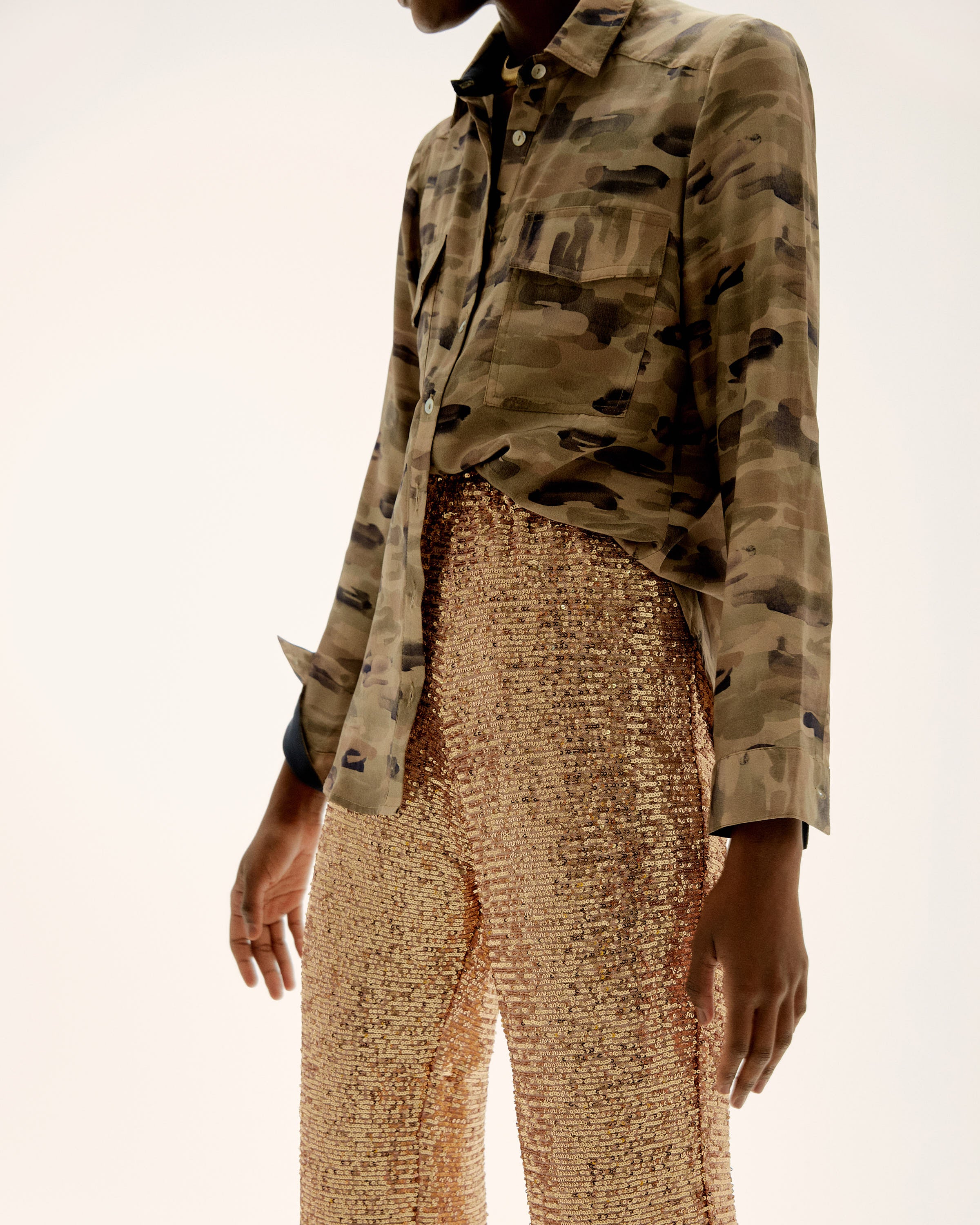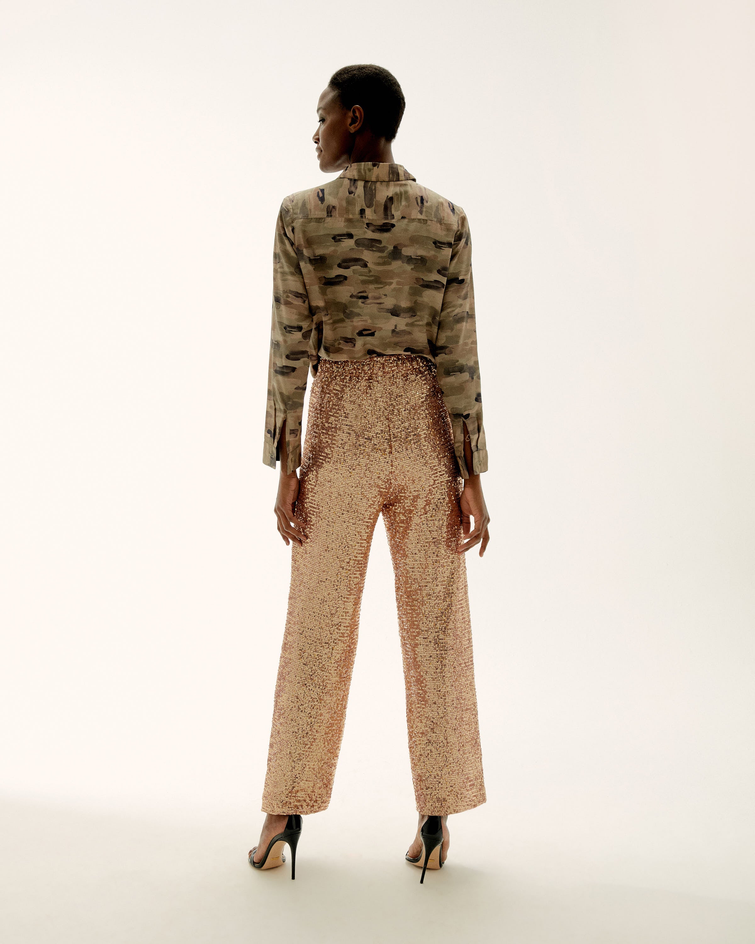 Entirely embroidered with sequins in our signature rosé gold dégradée color, the Leblon Sequins Pant is cut in a relaxed fit and features a elasticated waist because glam can also be practical. This showstopper piece is a different take on glamorous dressing and you can even dress it down when you want something extra in your everyday. Style it with sneakers and a denim shirt for a modern, sparkling look or with a t shirt and pin-thin heels for a fun night out.