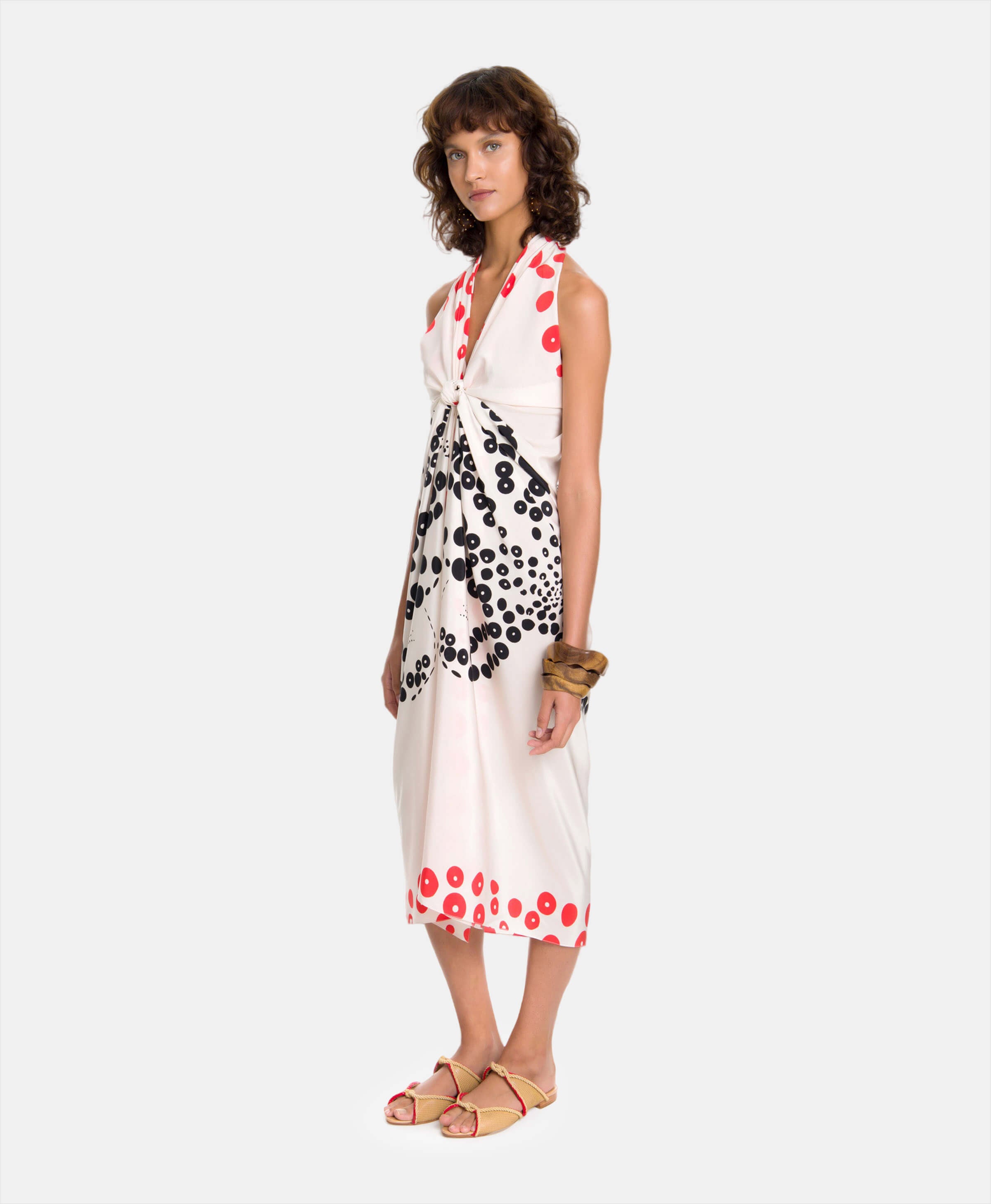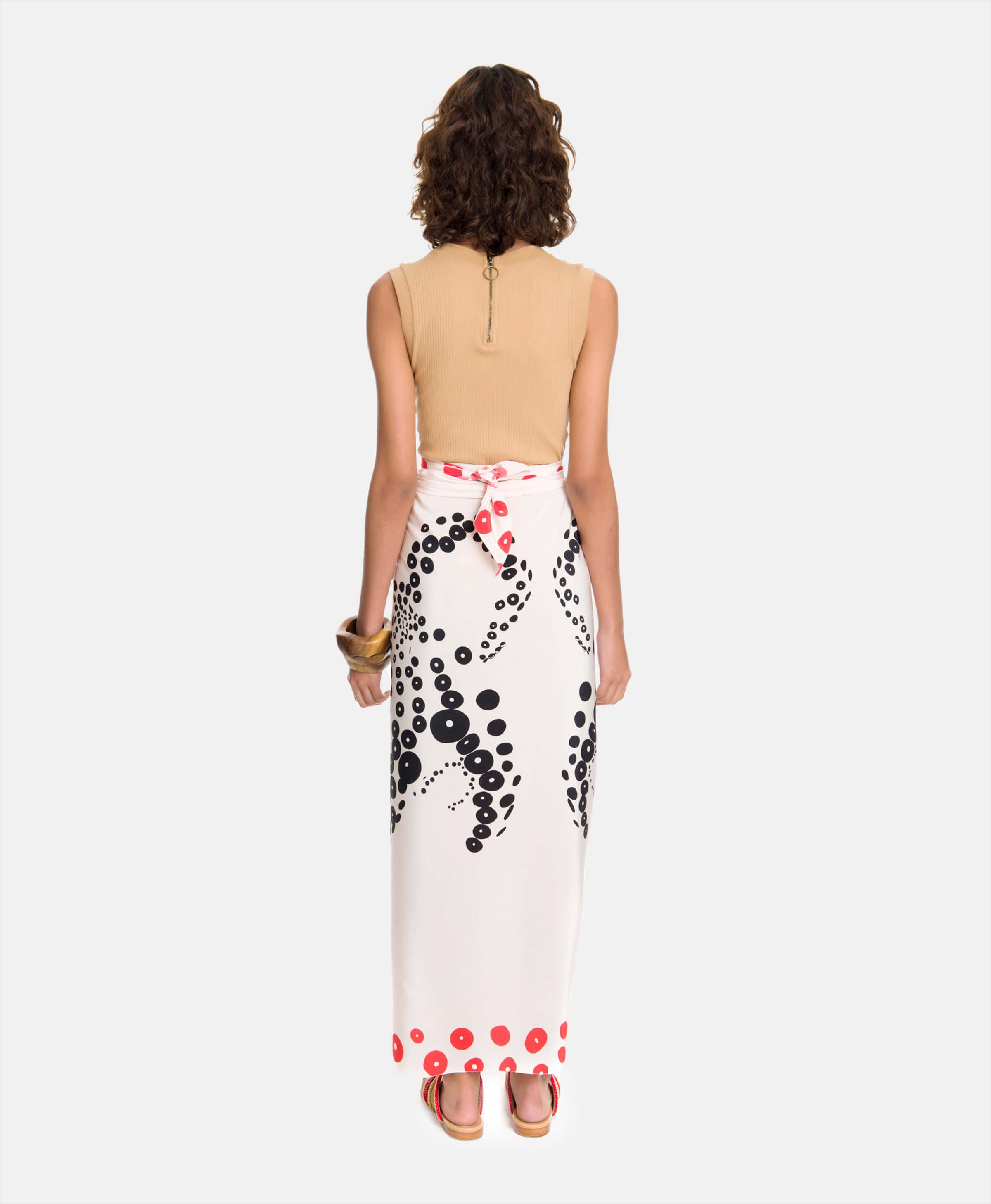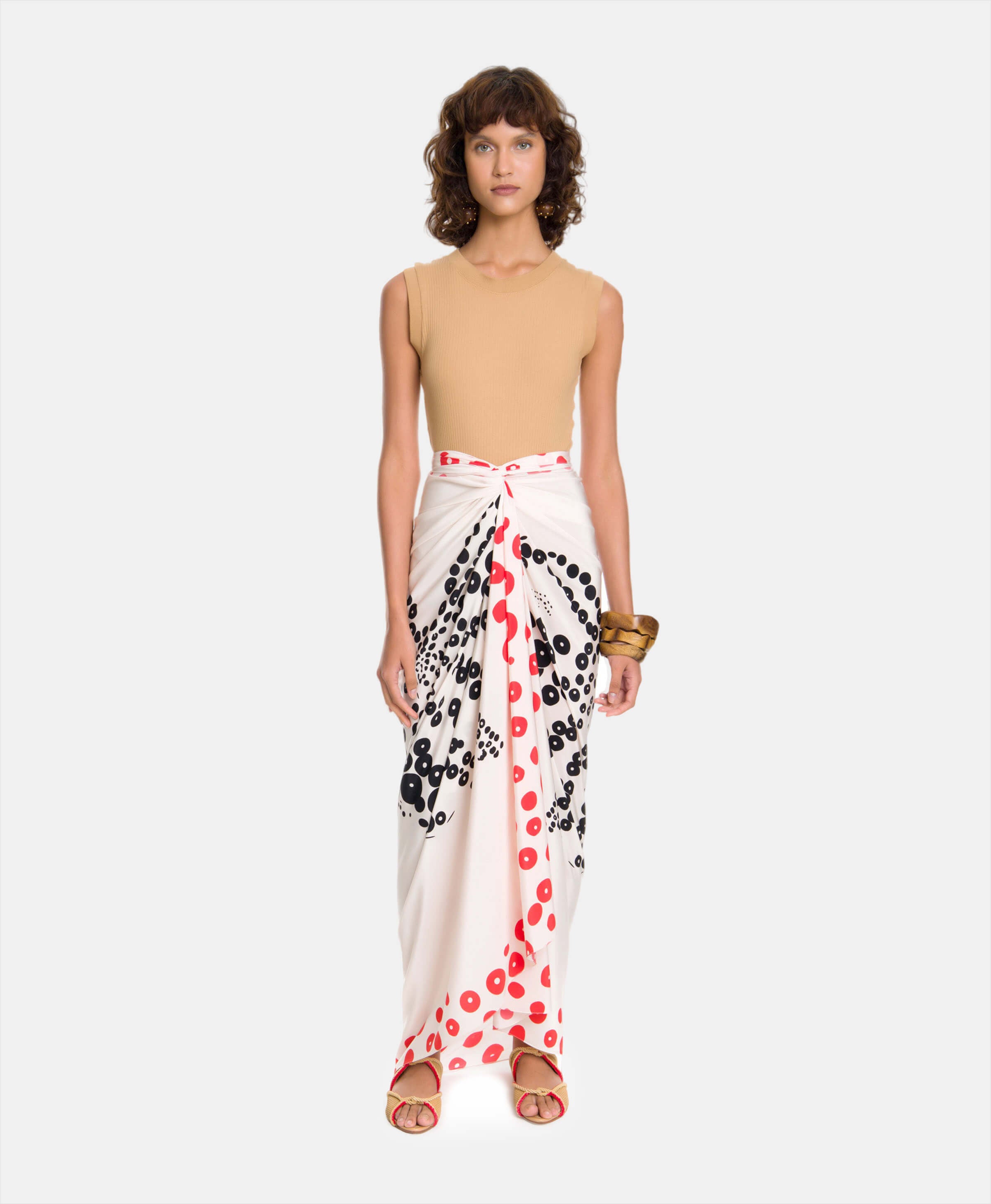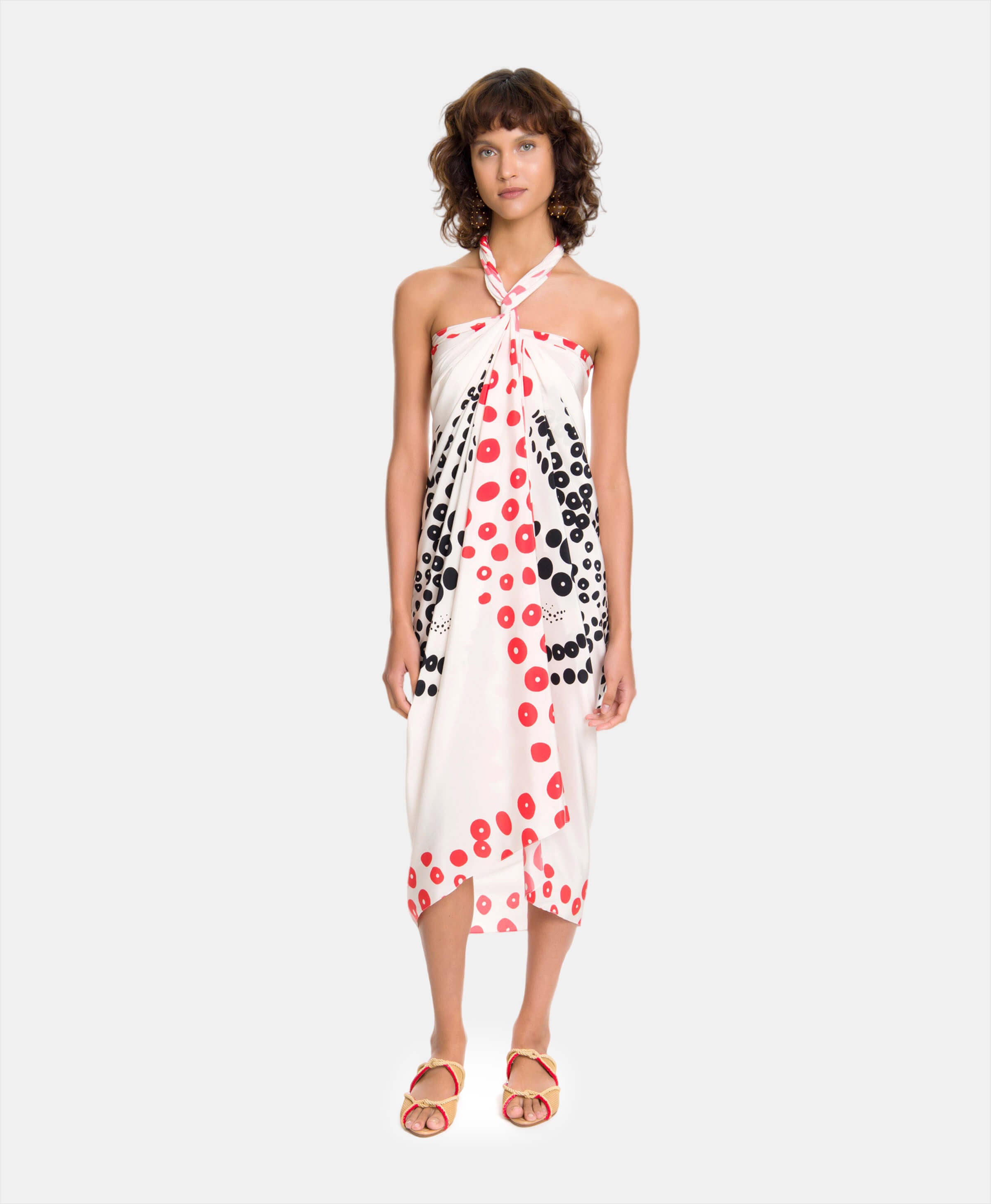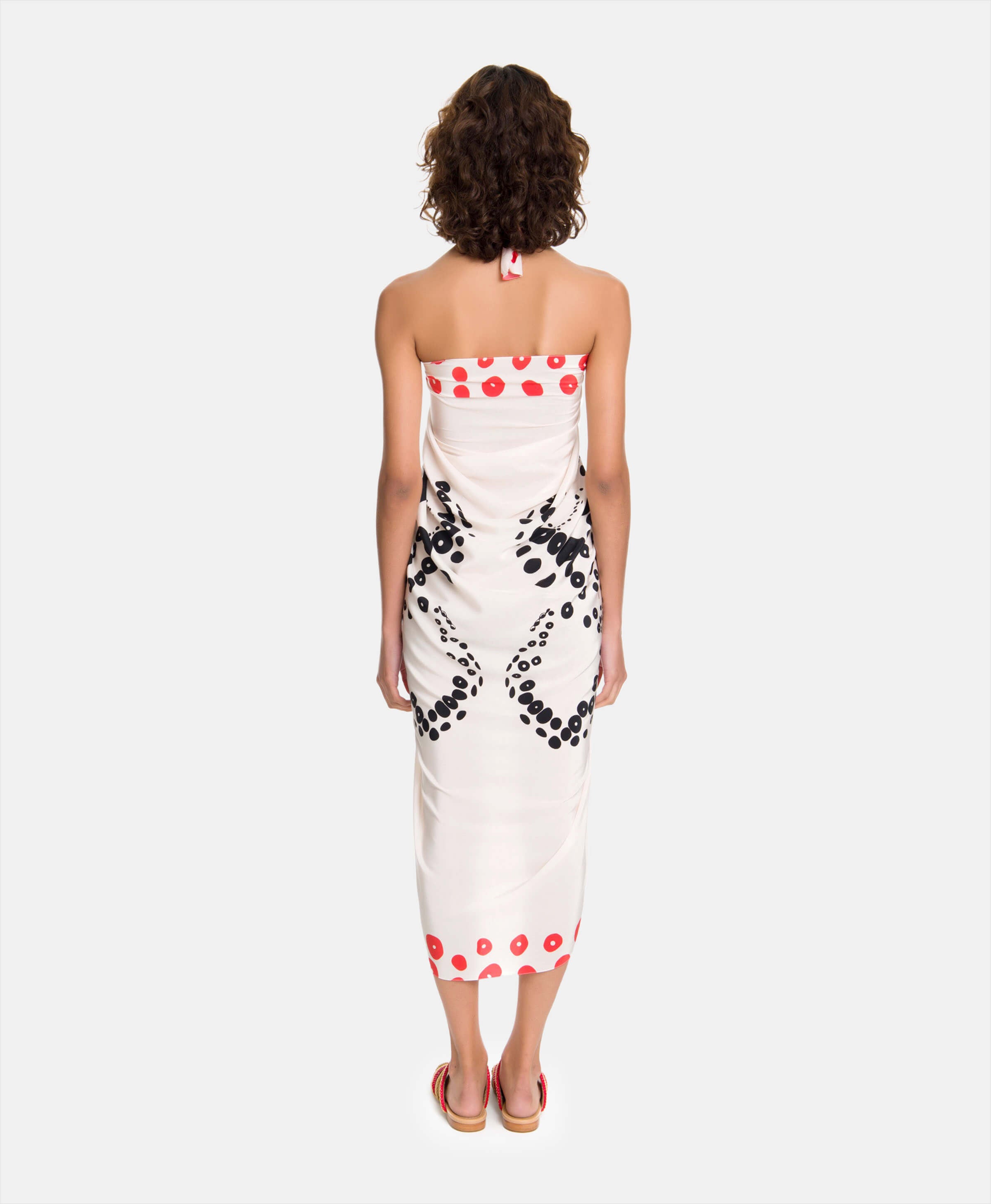 Crafted in the most luxurious silk, the Vanda Jacintho Octopus Panneau has a beautiful exclusive Octopus print in black, white and red. A versatile and multifaceted piece of fine clothing that can be worn in four different ways, the panneau is a chic way to style your destination wardrobe, all you need is a wild imagination to get started.