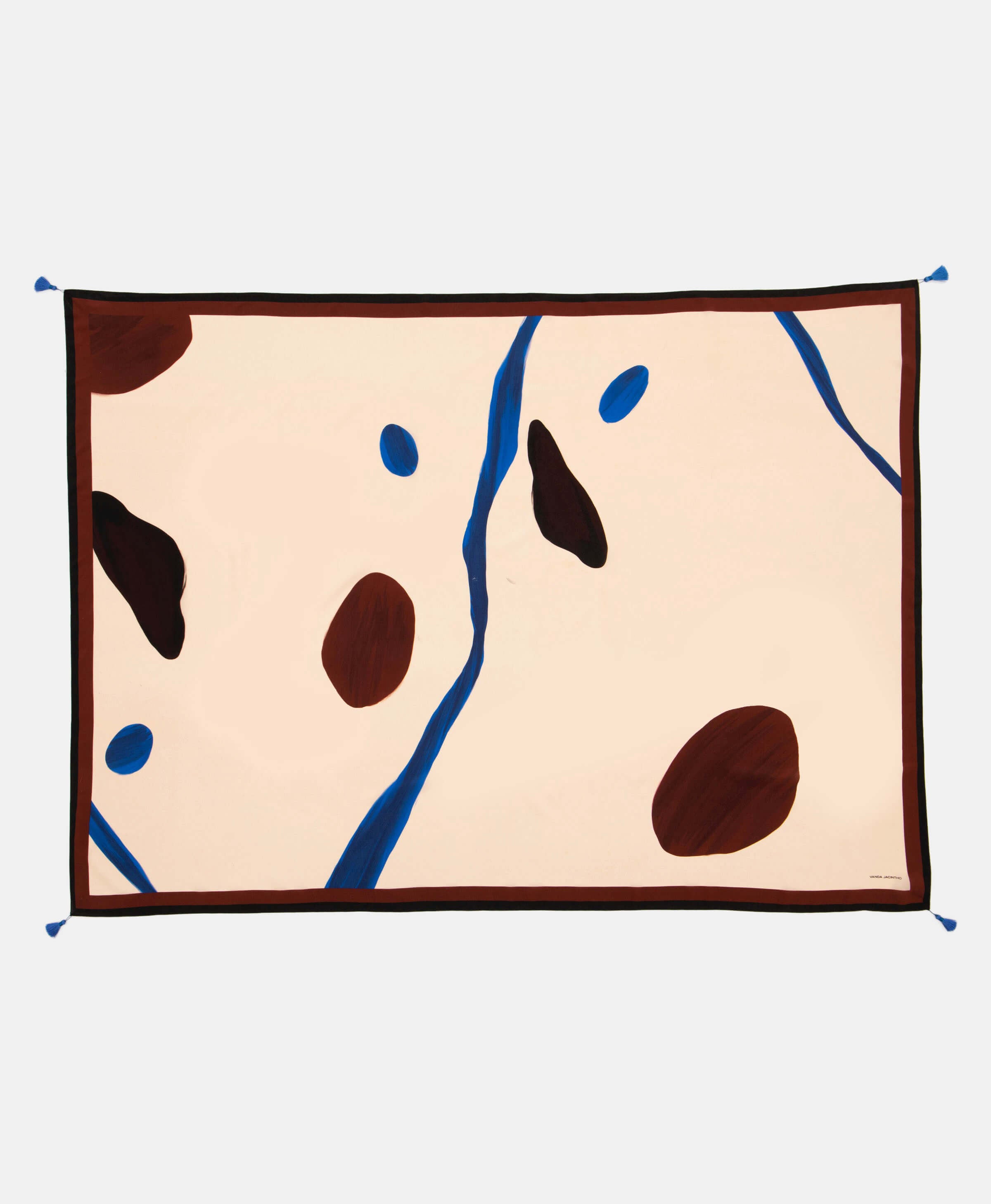Crafted in the most luxurious silk, the Vanda Jacintho Organic Strokes Panneau is a shorter version of the iconic piece. With an exclusive abstract print that is not only neutral but chic, the panneau is a versatile and multifaceted piece of fine clothing that can be worn in different ways, from the beach to a party, all you need is a wild imagination to get started. A delicate blue tassel detail gives the piece a charming touch.