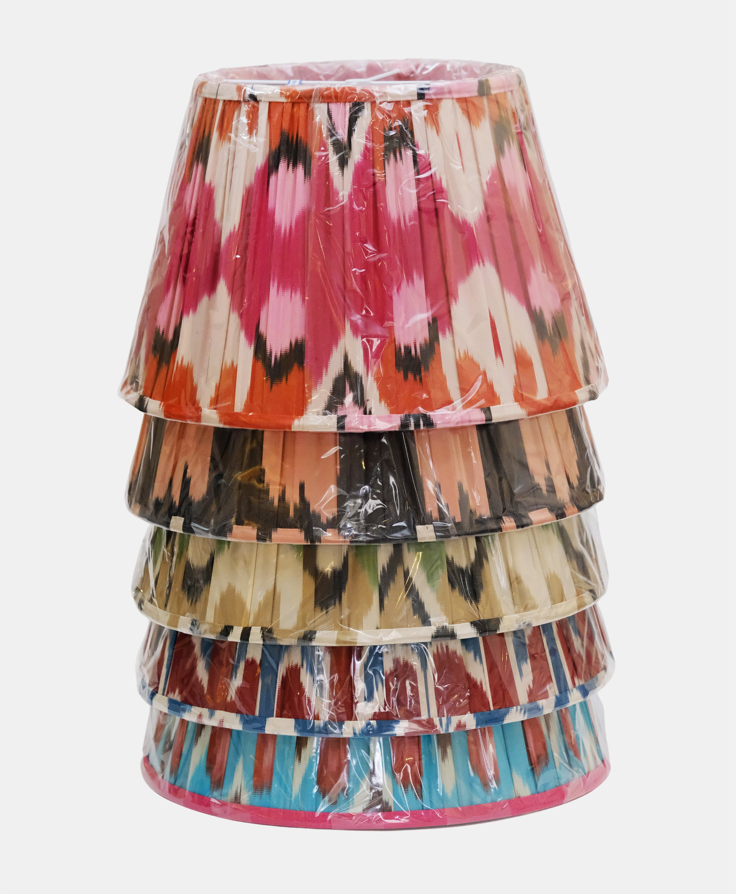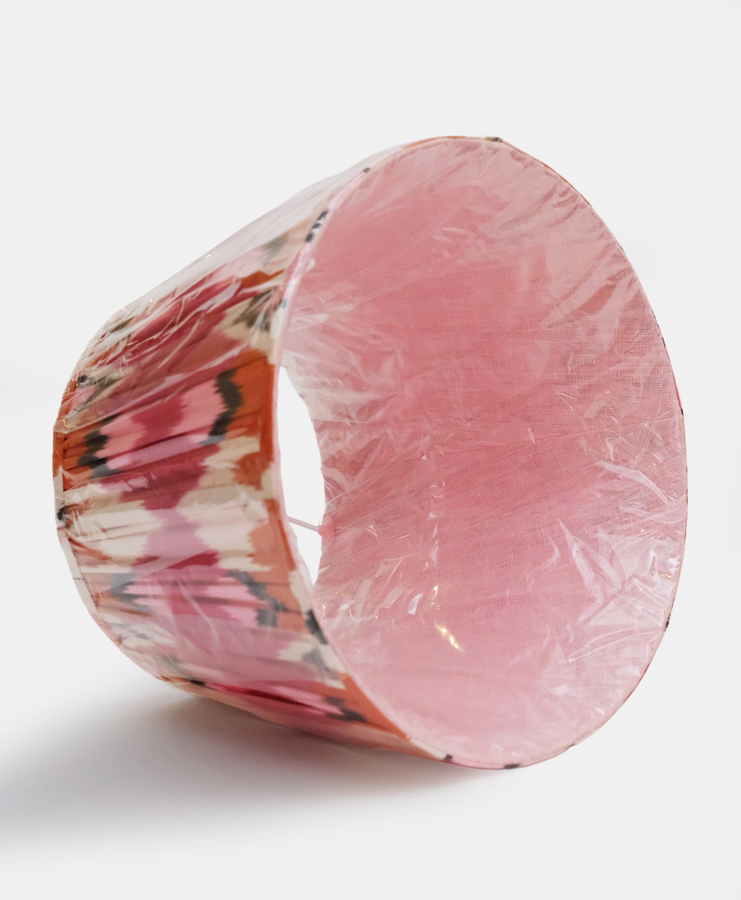 - The outer fabric of this lampshade is made out of gathered IKAT and is a mix of silk and cotton.