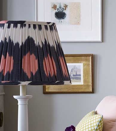 The IKAT fabric gives this lampshade a cosmopolitan air of Eastern promise. Ideal for city living, cosy homes or even monochrome spaces adding just the right dash of colour. Perfect for acquired and sophisticated tastes. What makes Melodi Horne lampshades different from others is her signature trade mark, the taut, colored linen linings, which make each piece, one of a kind.
