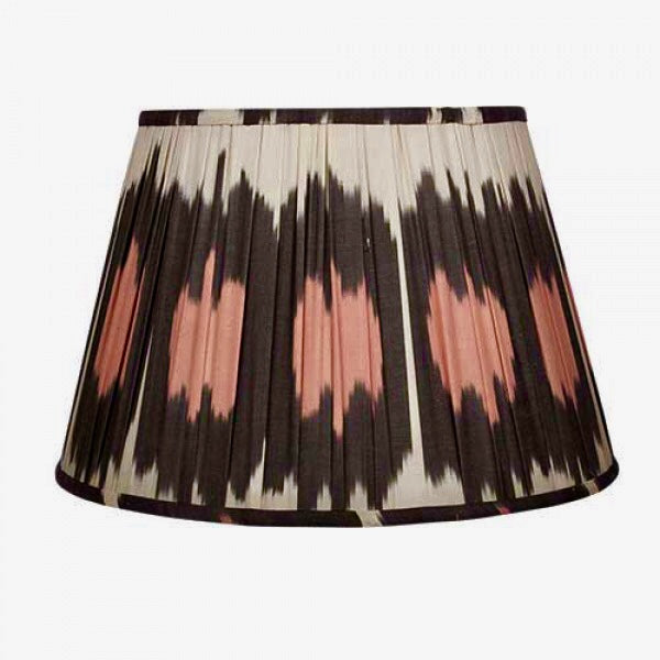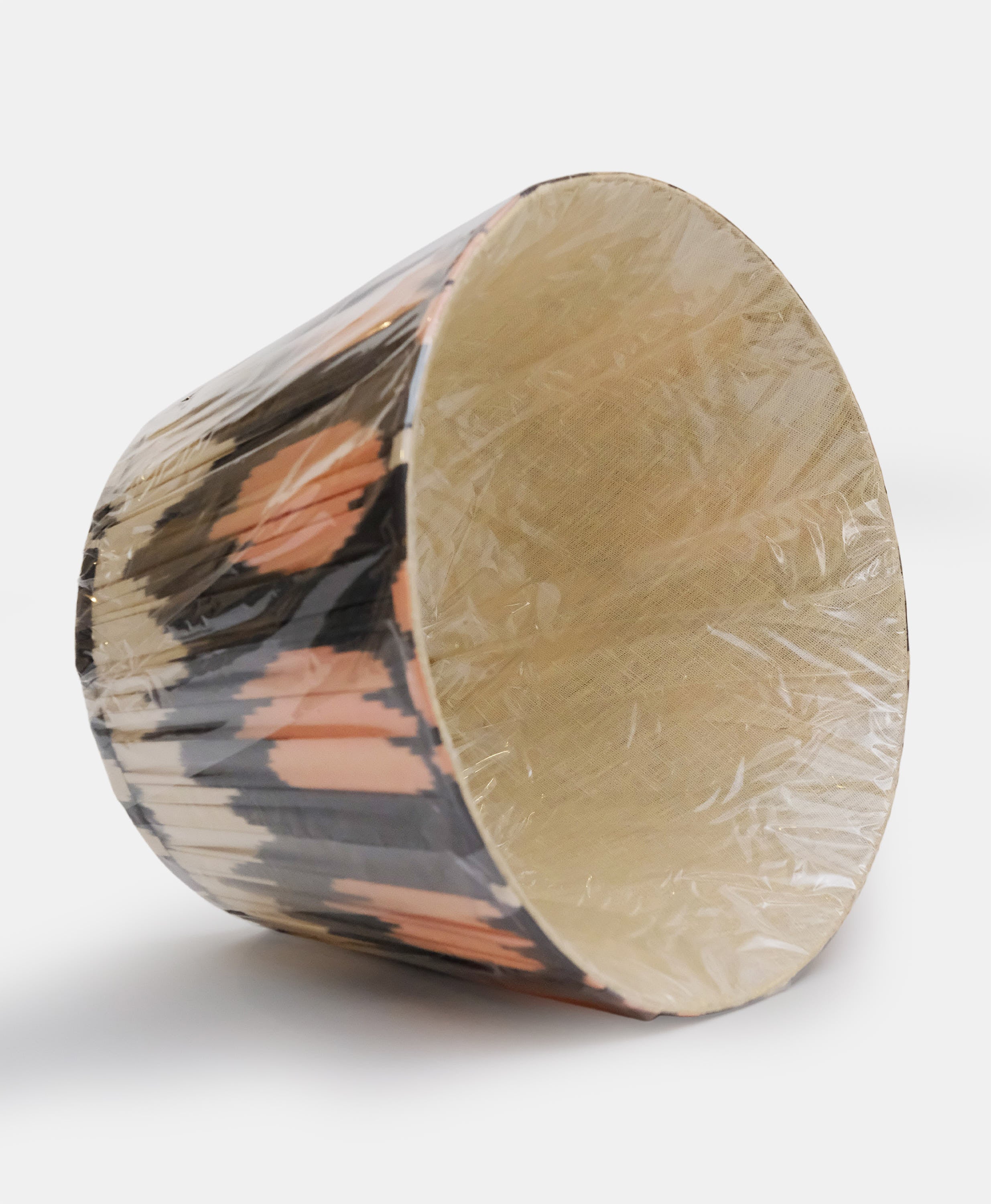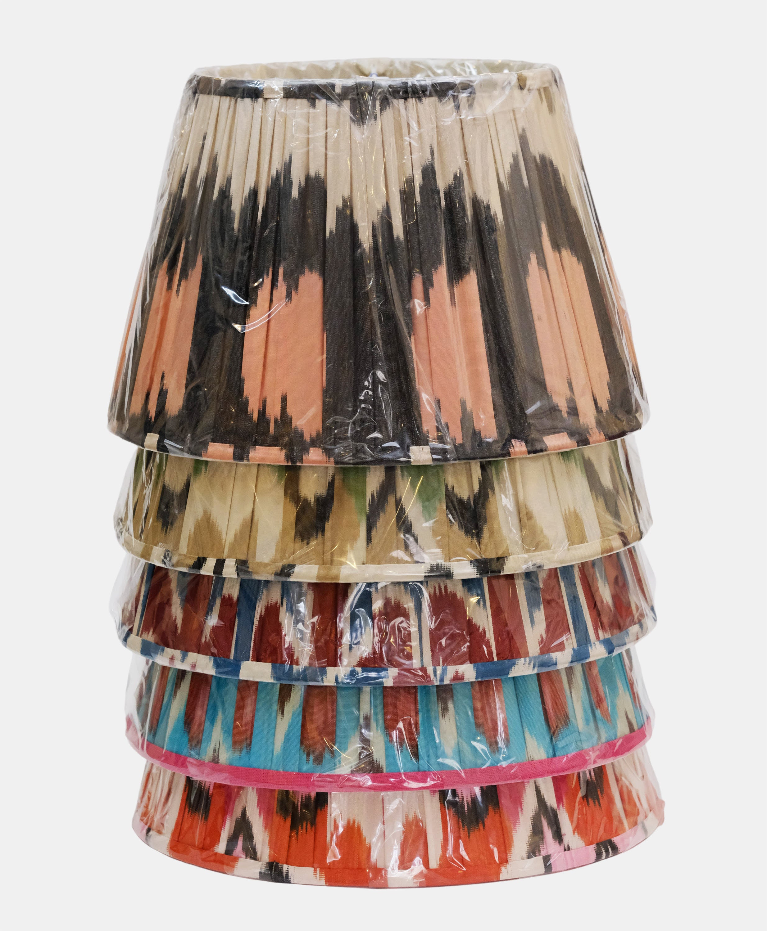 - The outer fabric of this lampshade is made out of gathered IKAT and is a mix of silk and cotton.