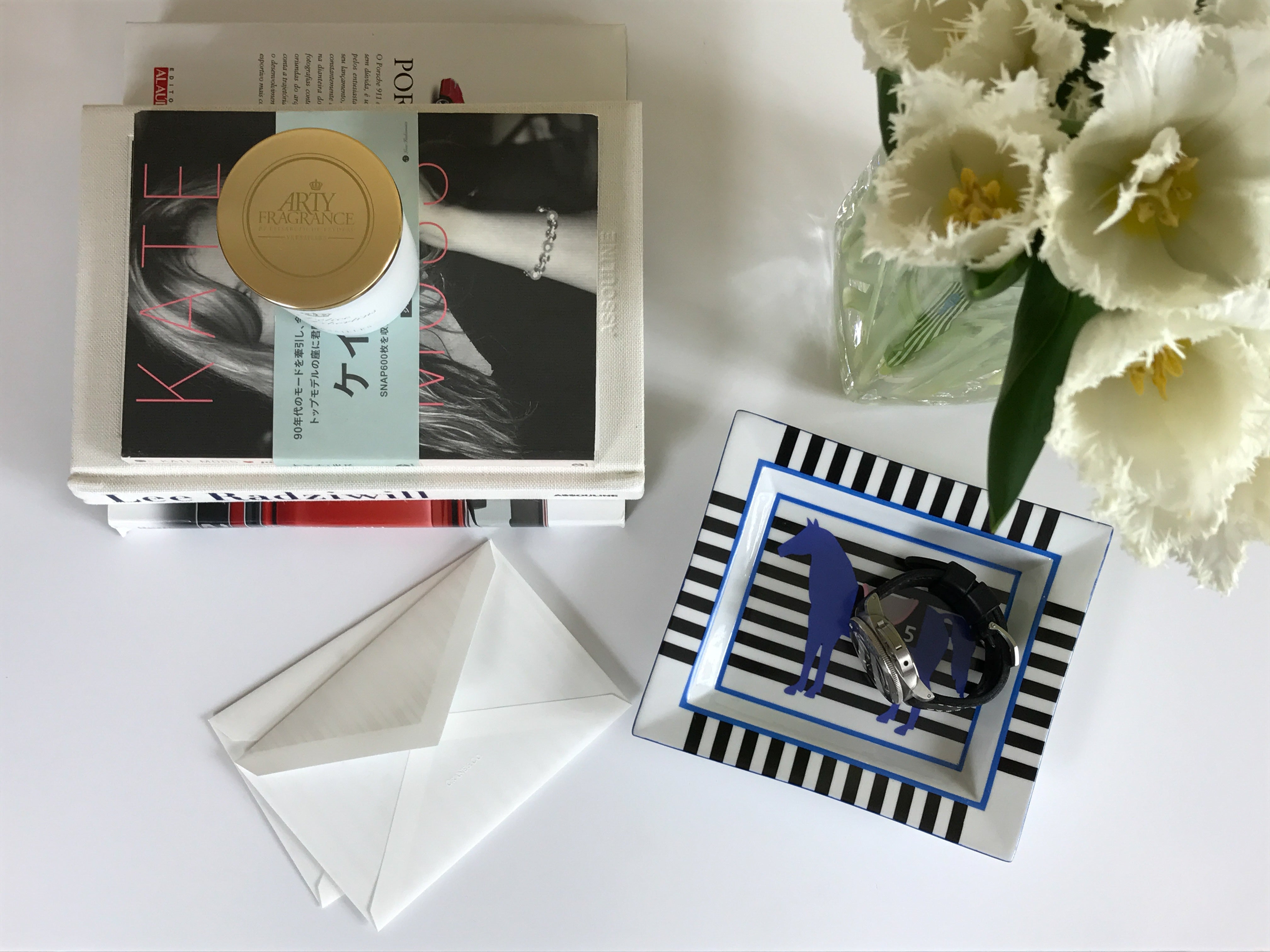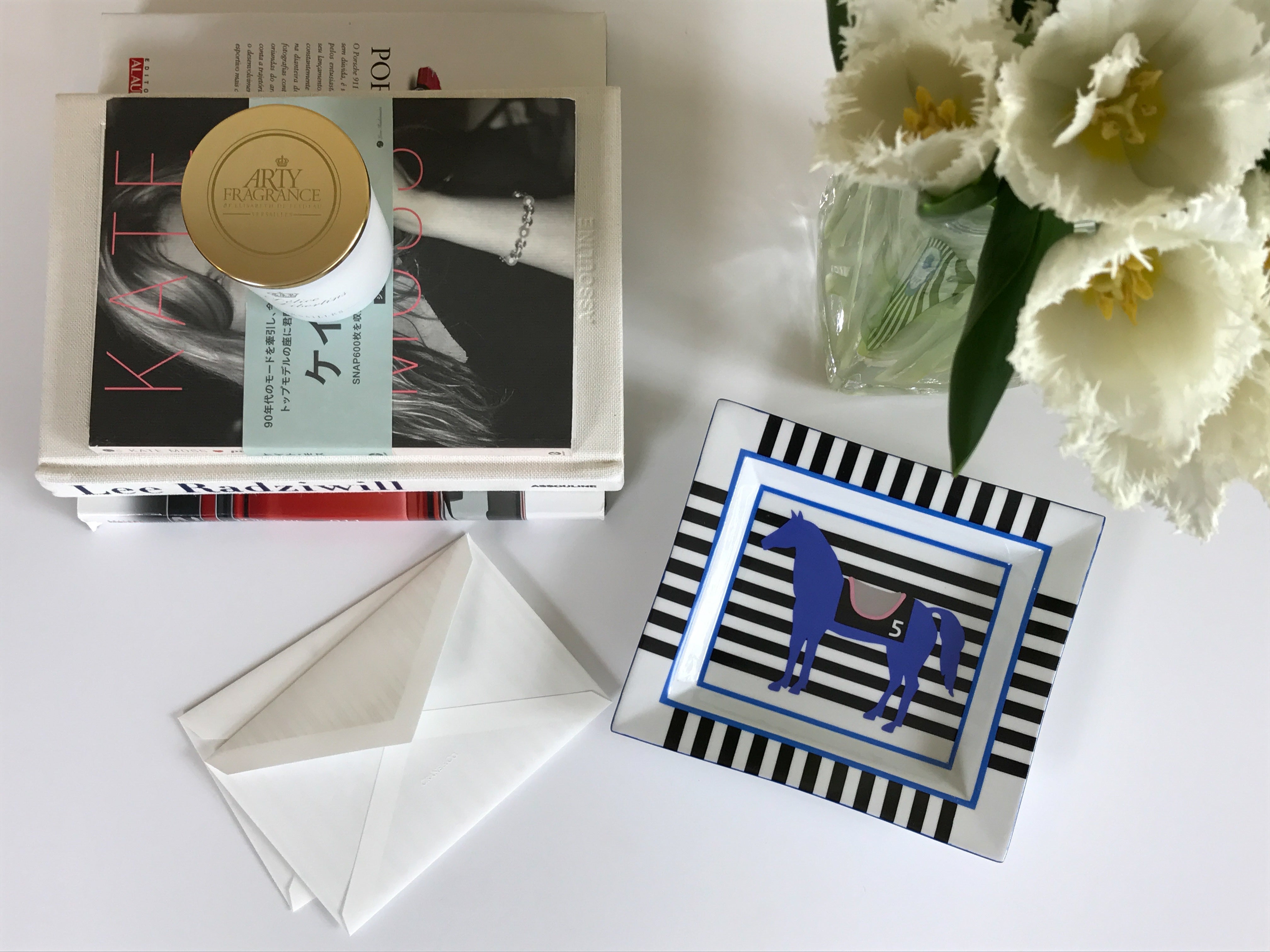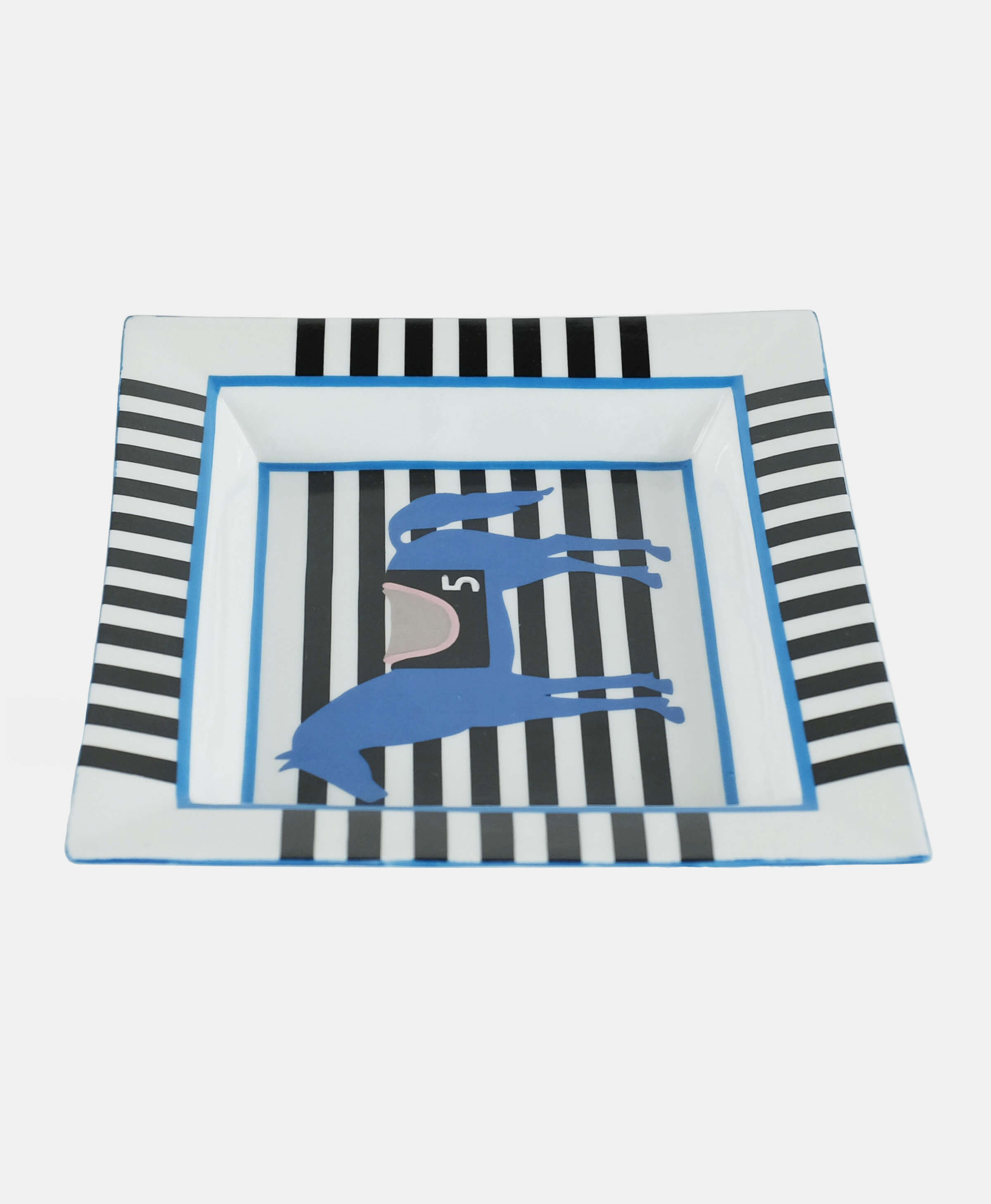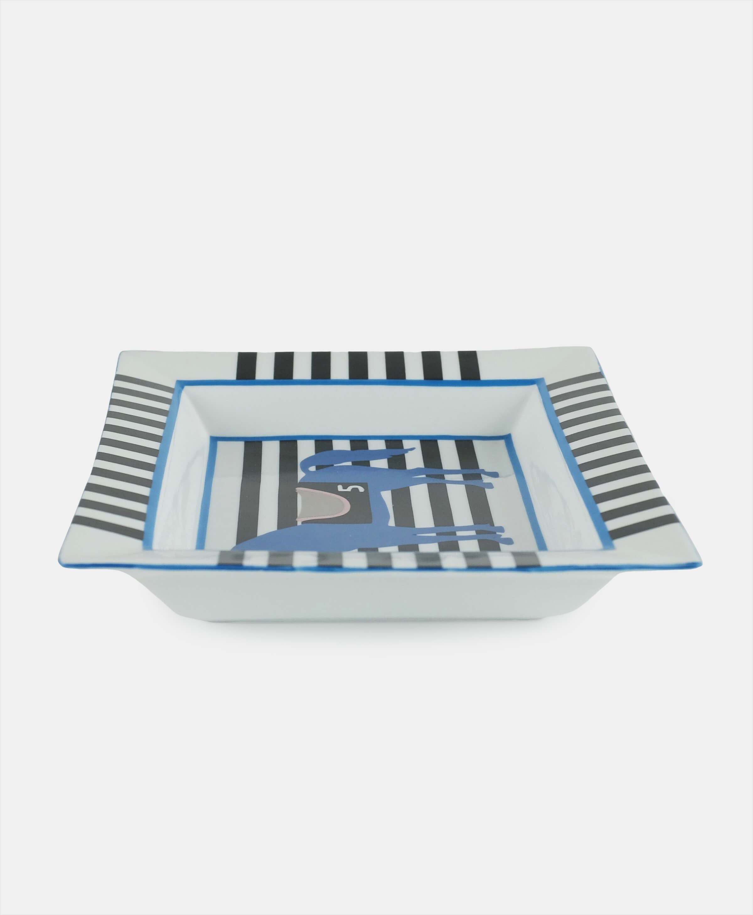 This unique tray, adorned with a horse and stripes is designed by French artist Isabelle Barthel, who created numerous prints and illustrations for luxurious houses like Hermes and Louis Vuitton. Perfect to decorate a coffee or side table of an office or study room, this piece is quintessentially French chic.