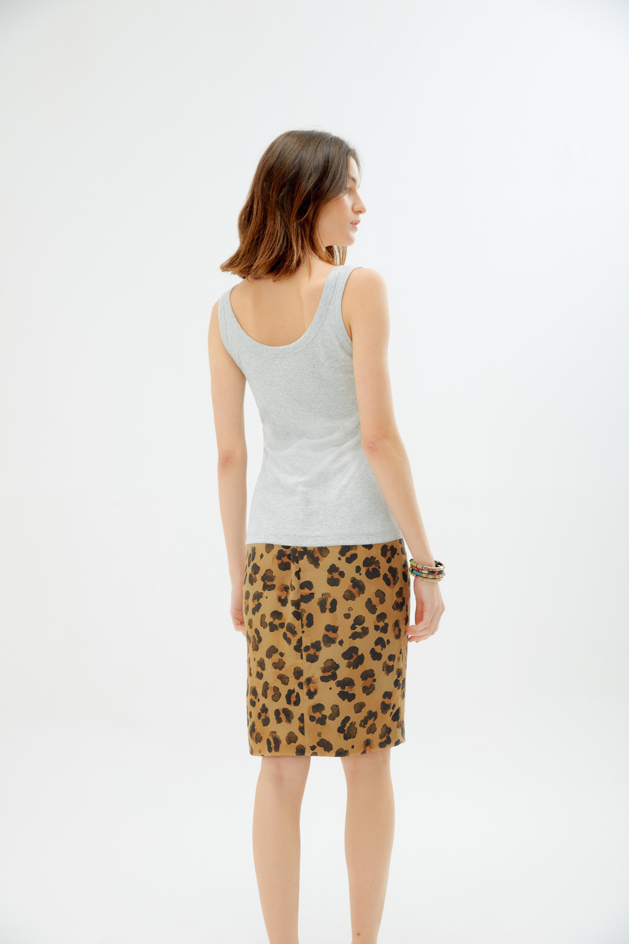 Cut from a soft, light weight viscose, this ribbed tank top is a not-so-basic-basic piece you will love having in your wardrobe. In the most versatile of colors, with a scoop neck and flattering cut, it is the perfect base for layering under anything you own, blazers, jackets, knits and cardigans. Long enough to be worn tucked in, pair it with skirts, jeans or high waisted black pants for an effortless chic look.